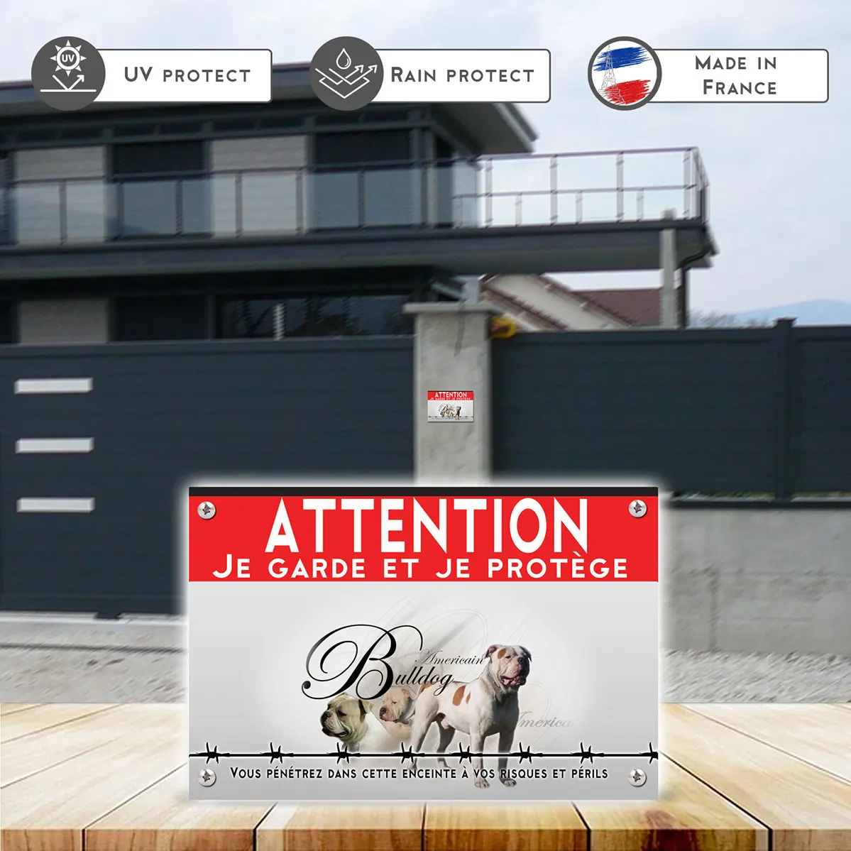 Pour en savoir plus sur notre gamme de plaque Attention au Chien American Bulldog.