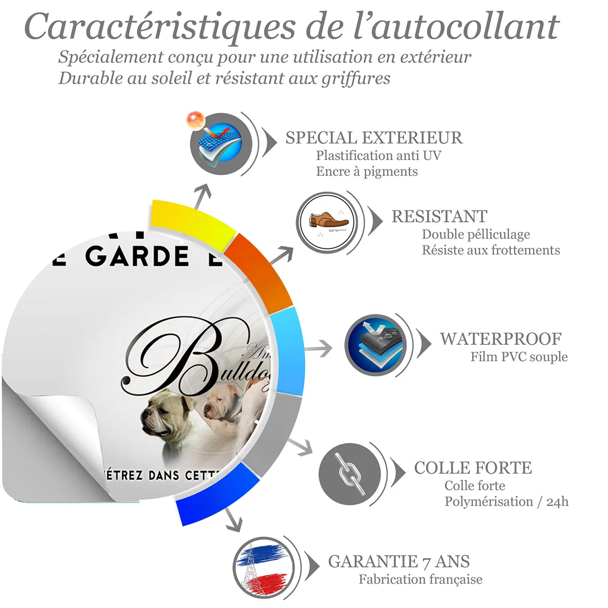 - Illustration réaliste du American Bulldog : une image fidèle qui authentifie la présence de votre compagnon et renforce l’effet de prévention.