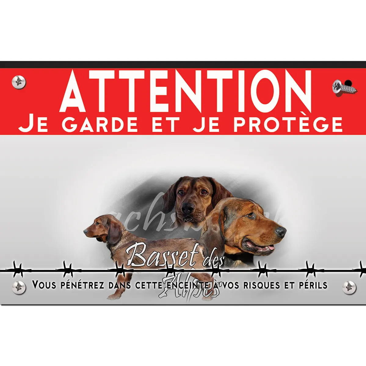Pour en savoir plus sur notre gamme de plaque Attention au Chien Basset Des Alpes.
