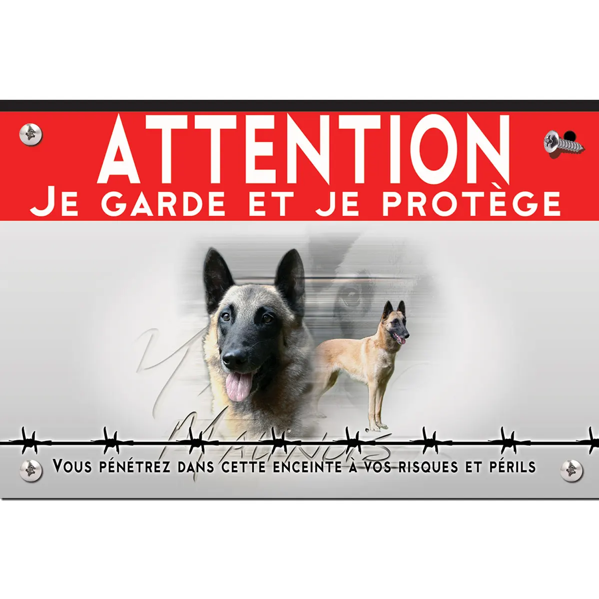 Panneau attention au chien Malinois Noir – Métal – Haute qualité