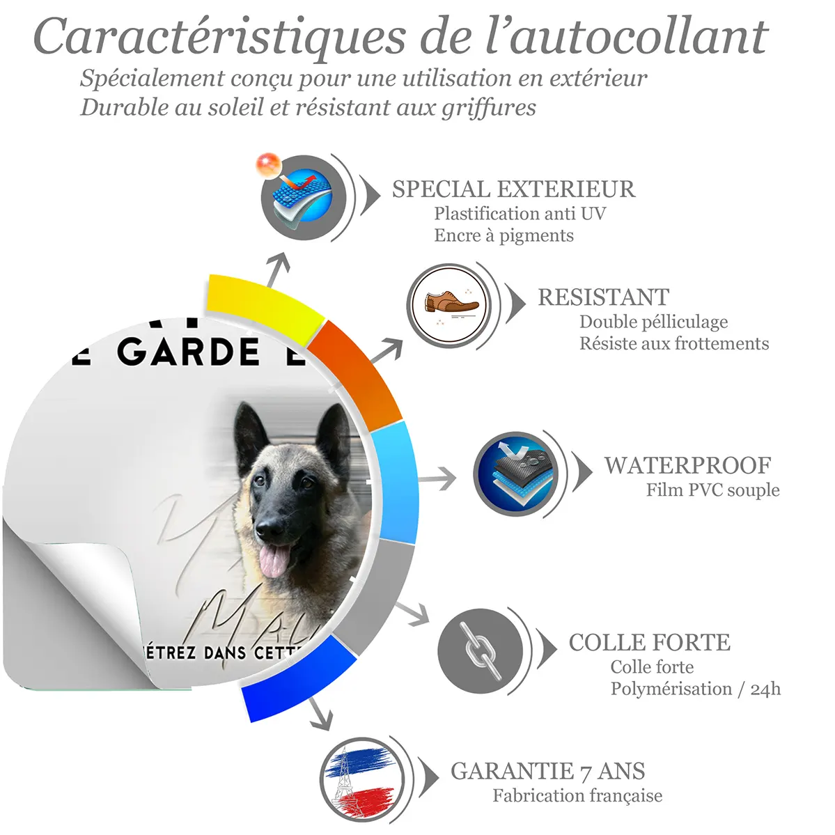 - Illustration réaliste du Malinois Noir : une image fidèle qui authentifie la présence de votre compagnon et renforce l’effet de prévention.