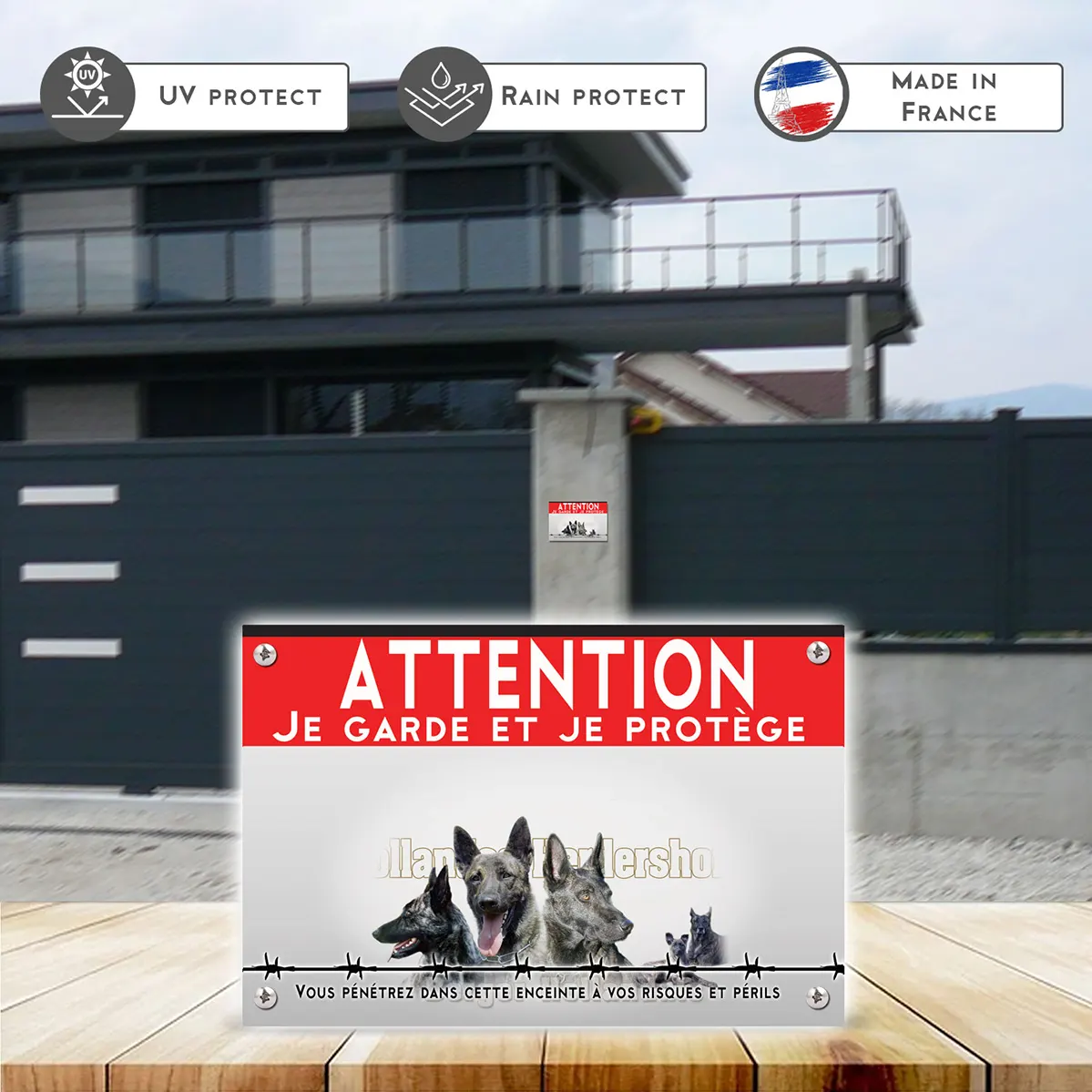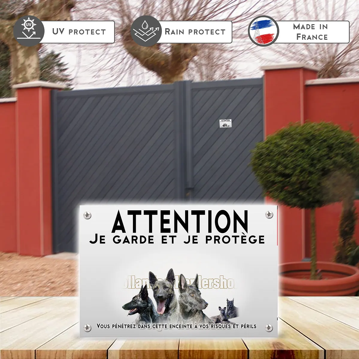 Pour en savoir plus sur notre gamme de plaque Attention au Chien Berger Hollandais.