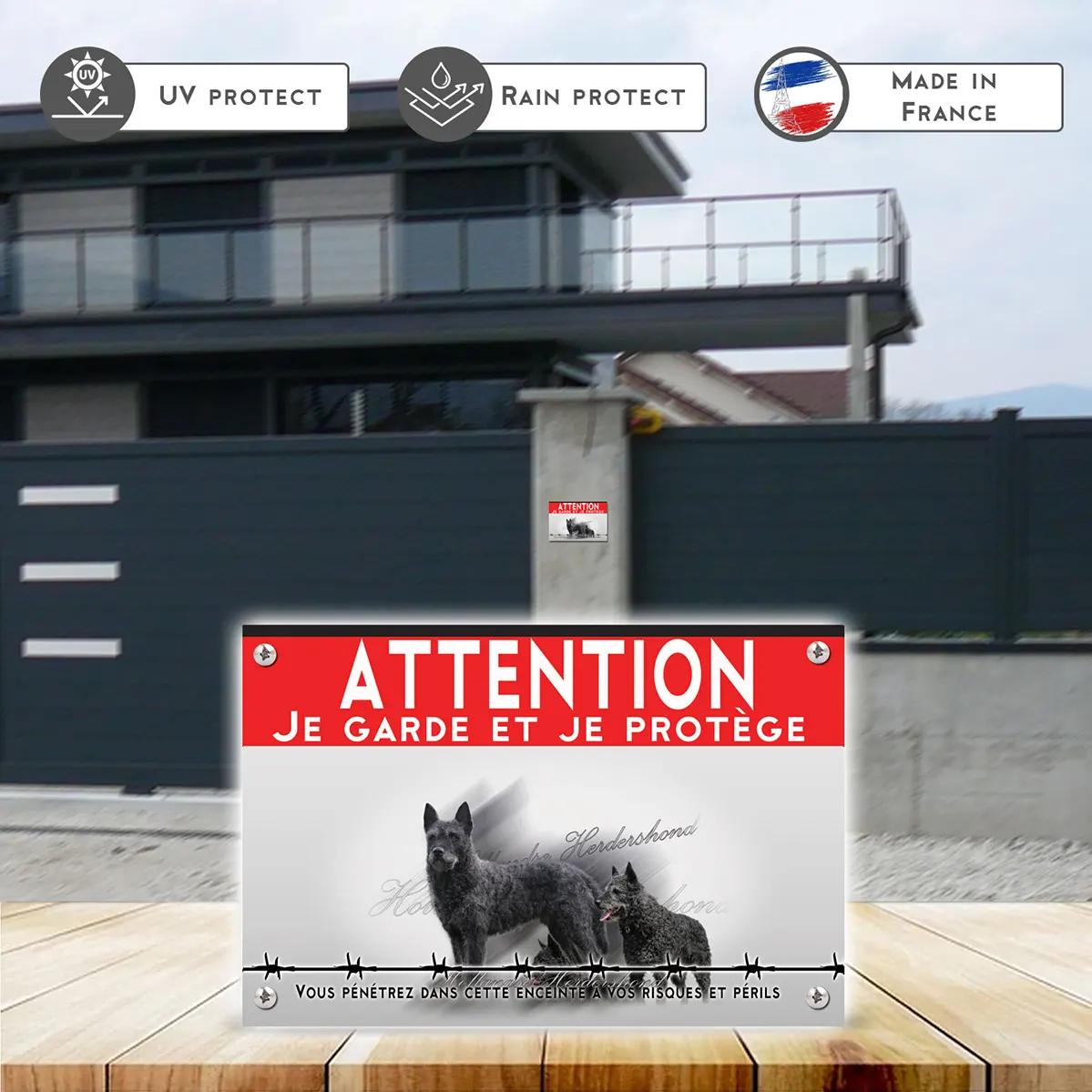 Panneau attention au chien Berger Hollandais Poil Dur – Métal – Haute qualité