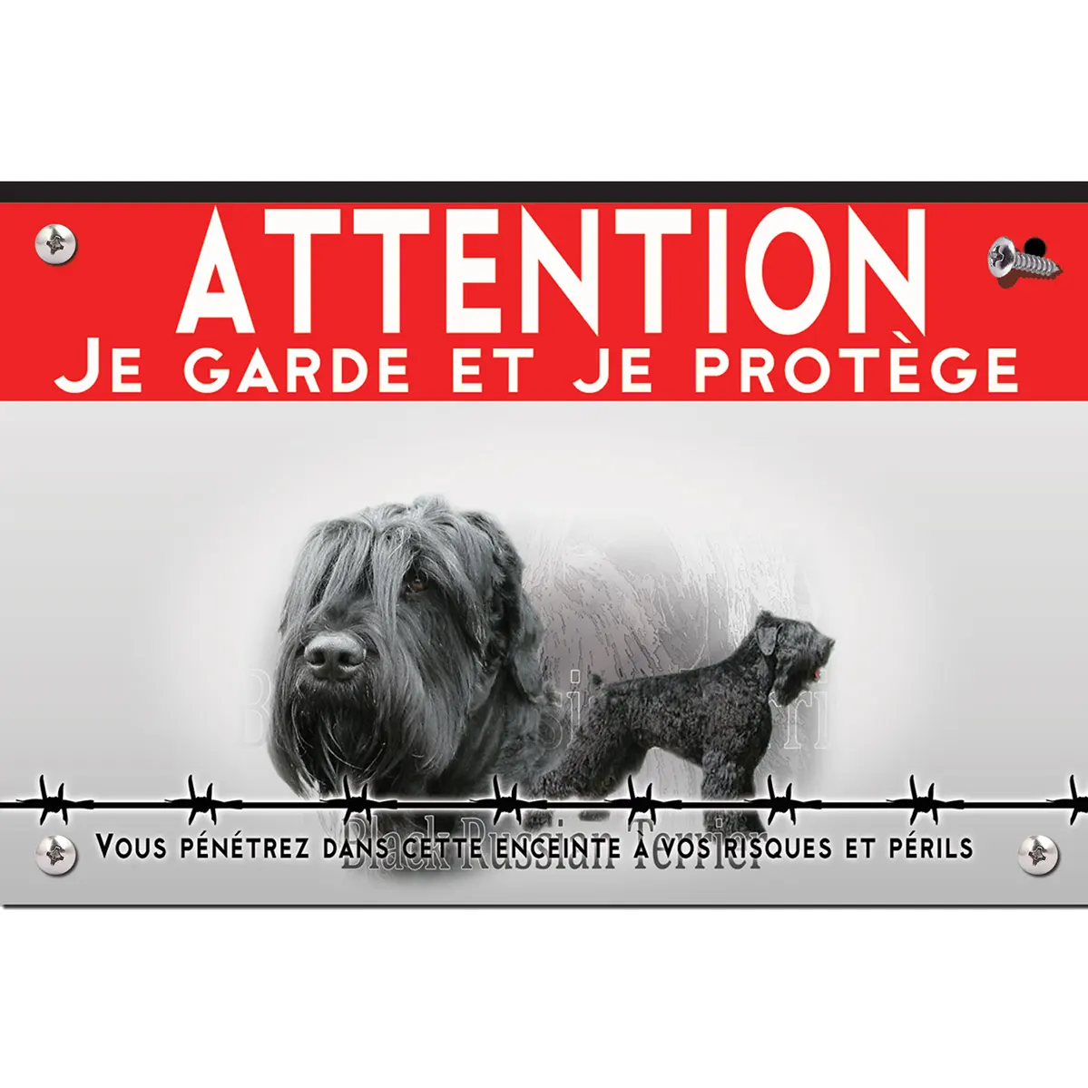 Pour en savoir plus sur notre gamme de plaque Attention au Chien Terrier Noir De Russie.