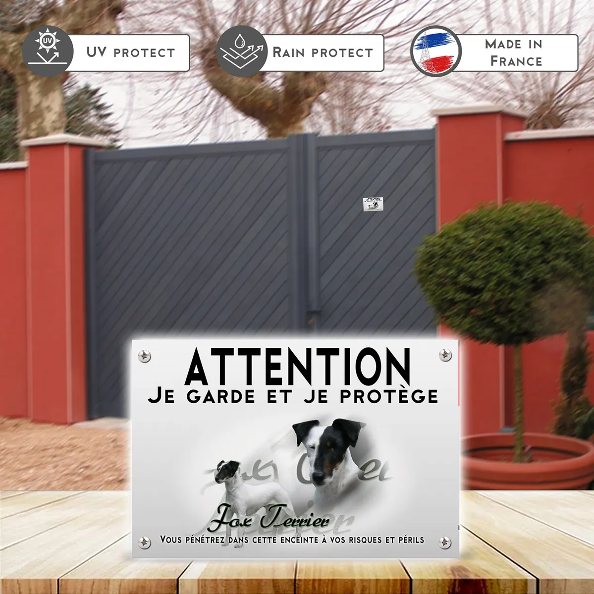 Pour en savoir plus sur notre gamme de plaque Attention au Chien Fox Terrier Poil lisse.