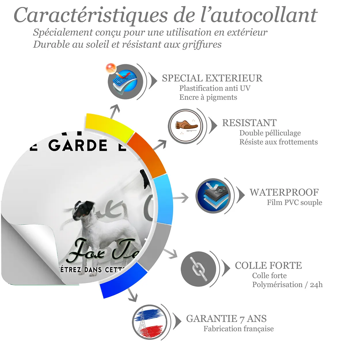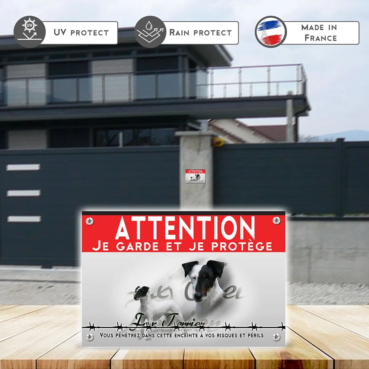 Le fox terrier poil ras est un chien au tempérament exceptionnel. Parfaitement équilibré, il possède une vigilance naturelle qui le rend très attentif à son environnement. Sa loyauté et son attachement à son foyer en font un protecteur des biens et des propriétés sans équivoque. Avec un instinct de garde aiguisé et une doucœur familiale touchante, ce chien sait préserver l’harmonie tout en assurant la sécurité. Cela rend d’autant plus pertinent l’usage d’une signalisation adaptée, qui valorise son rôle protecteur tout en respectant la tranquillité des visiteurs.