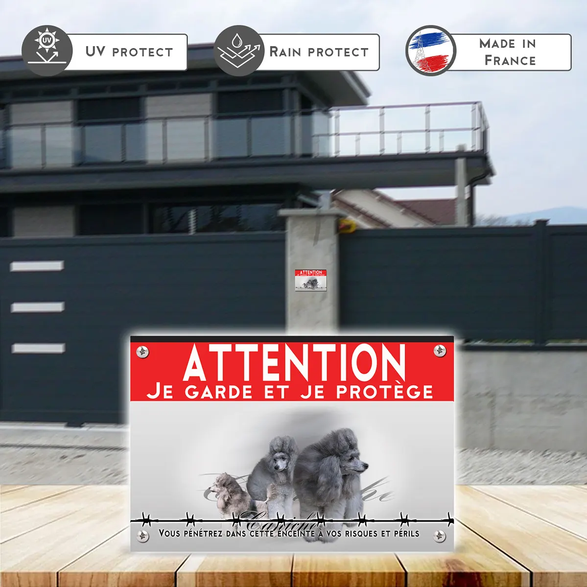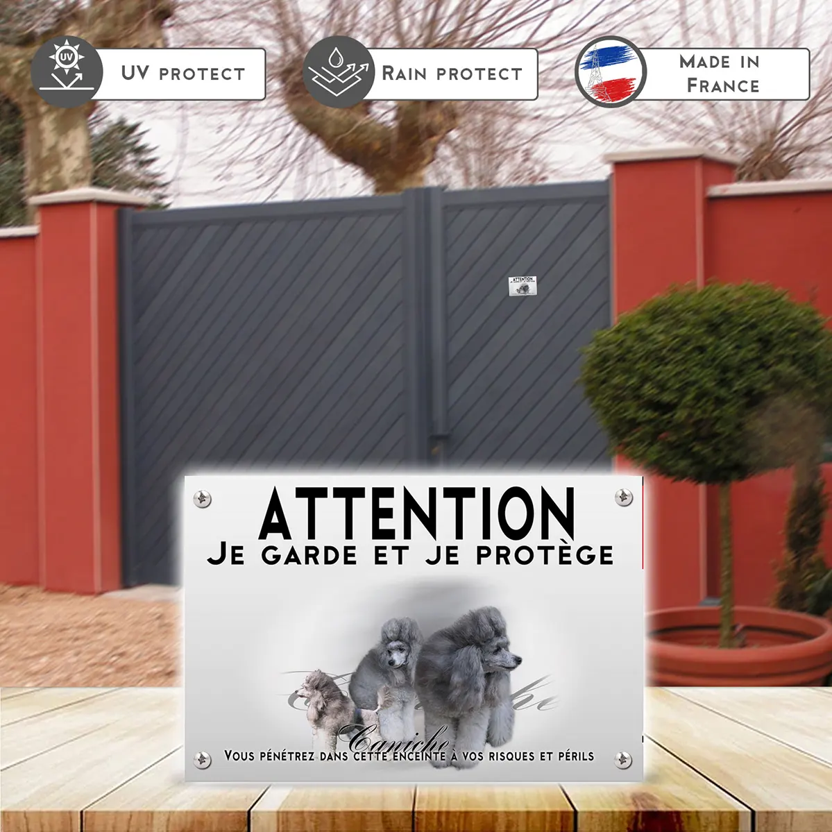 Pour en savoir plus sur notre gamme de plaque Attention au Chien Caniche Gris.