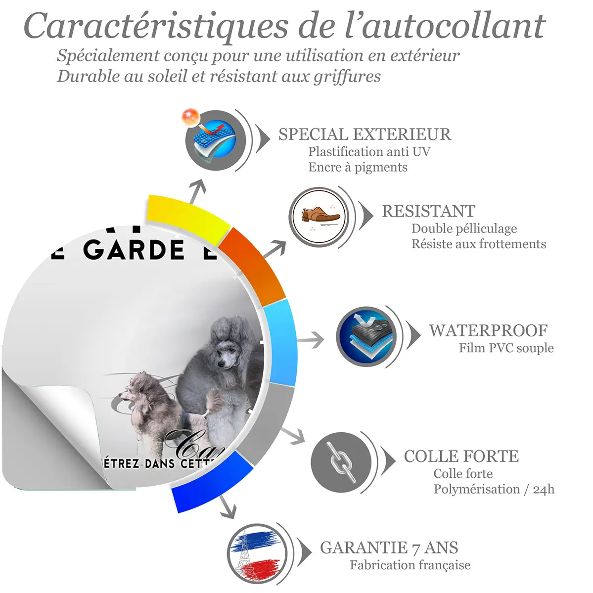 - Que vous optiez pour une plaque ou un adhésif, il est crucial de choisir un support qui assurera une portée optimale du message, afin que chaque visiteur soit éveillé à la présence de votre compagnon.