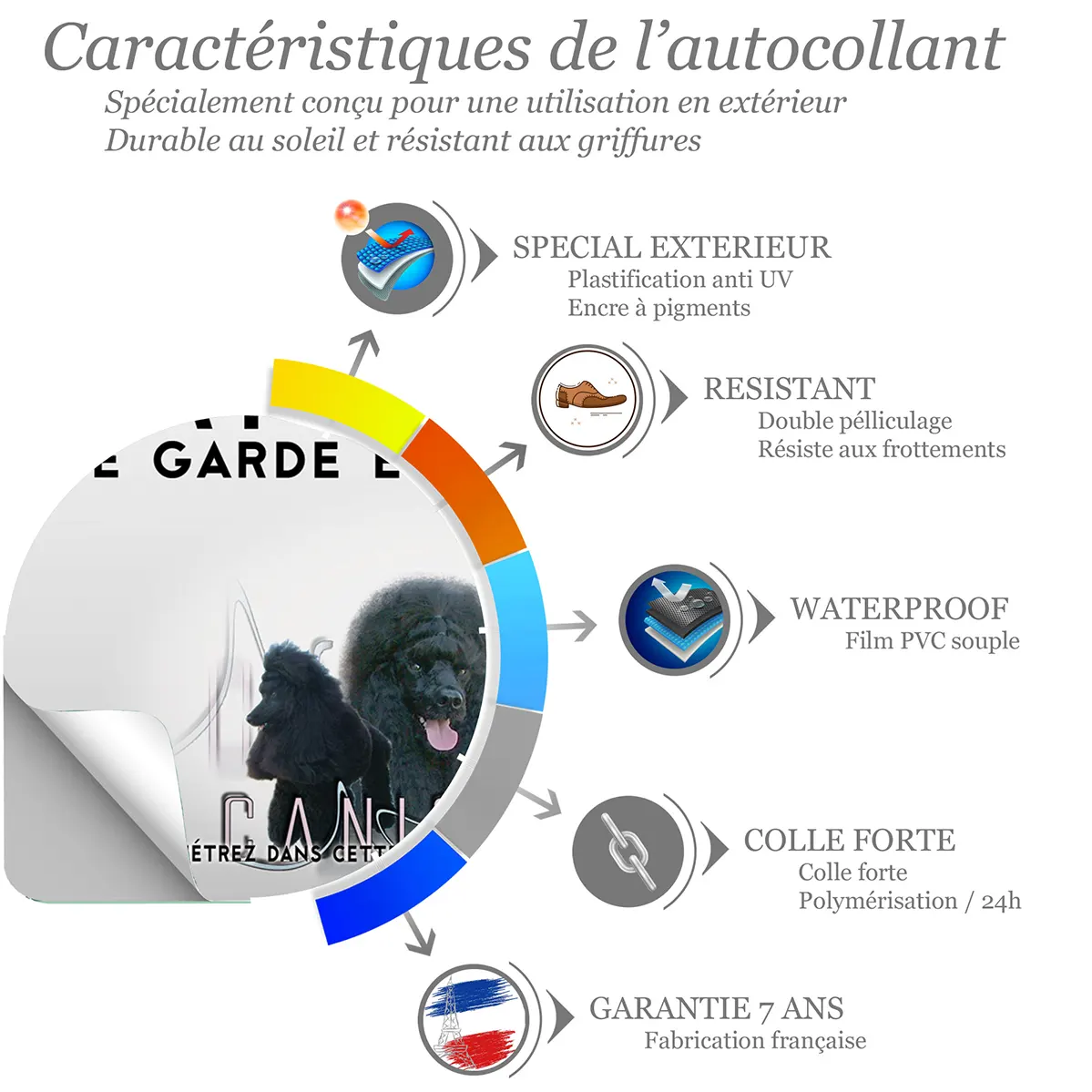 Affichez avec force et élégance la présence de votre Caniche Noir. Ce panneau Attention au Chien Caniche Noir de la Gamme Impact, disponible en métal Dibond et autocollant résistant aux intempéries et imprimé en UV, offre un contraste puissant pour une lisibilité immédiate et une dissuasion polie à l’entrée.