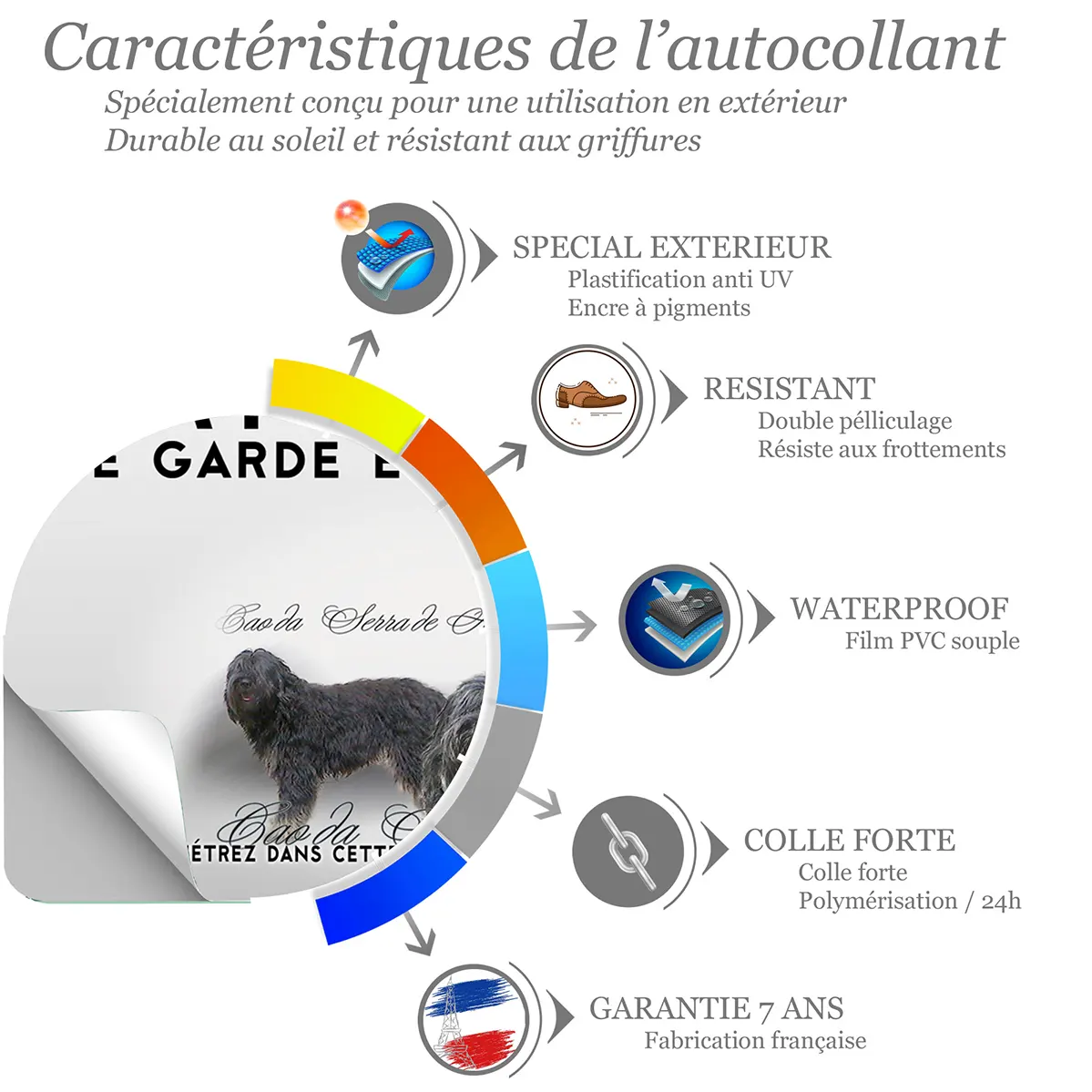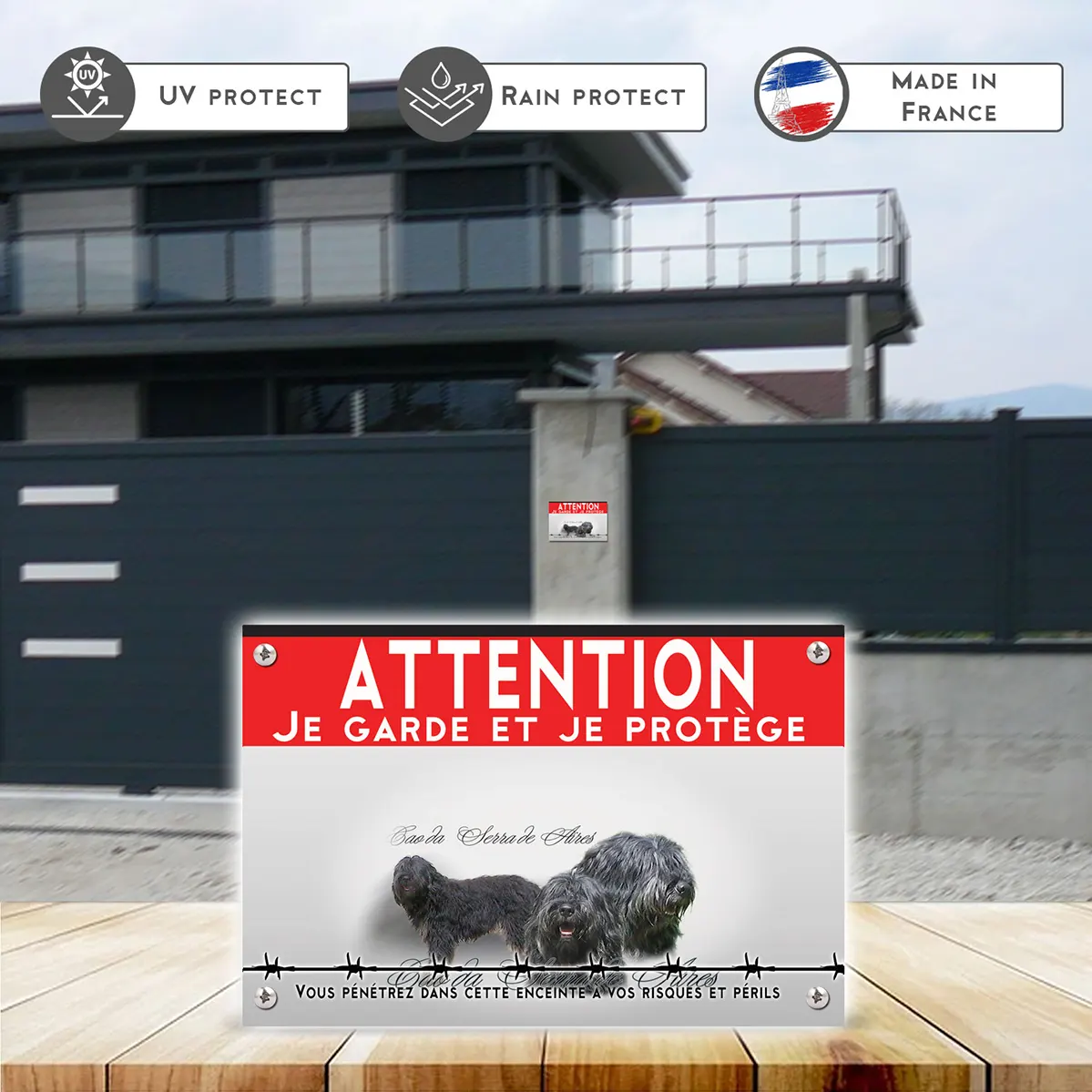 Affichez avec force et élégance la présence de votre Cao-Da-Sera-De-Aires. Ce panneau Attention au Chien Cao-Da-Sera-De-Aires de la Gamme Impact, disponible en métal Dibond et autocollant résistant aux intempéries et imprimé en UV, offre un contraste puissant pour une lisibilité immédiate et une dissuasion polie à l’entrée.