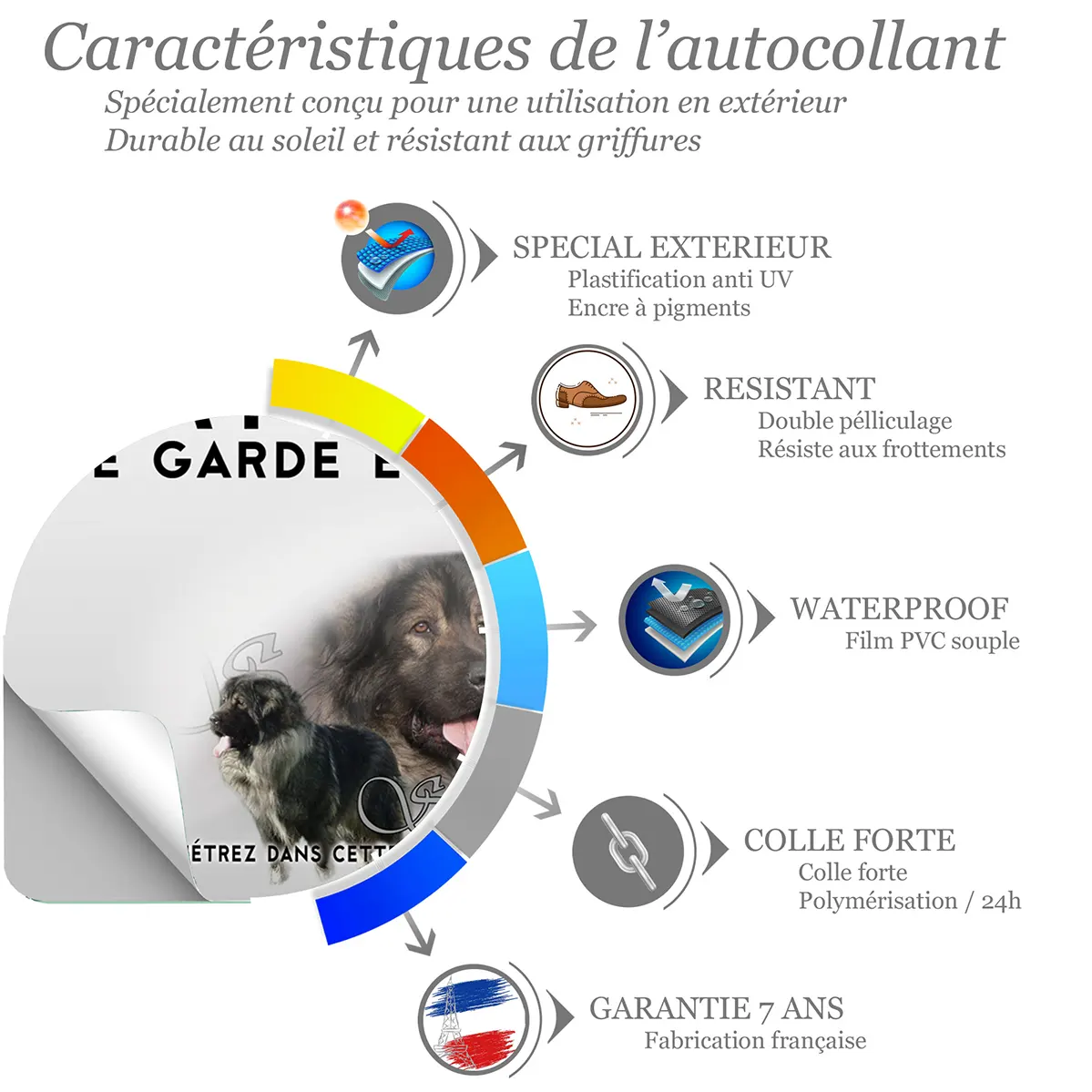 - Prévention essentielle : informe clairement de la présence du chien, limite les approches hasardeuses et aide à protéger vos biens et votre propriété.