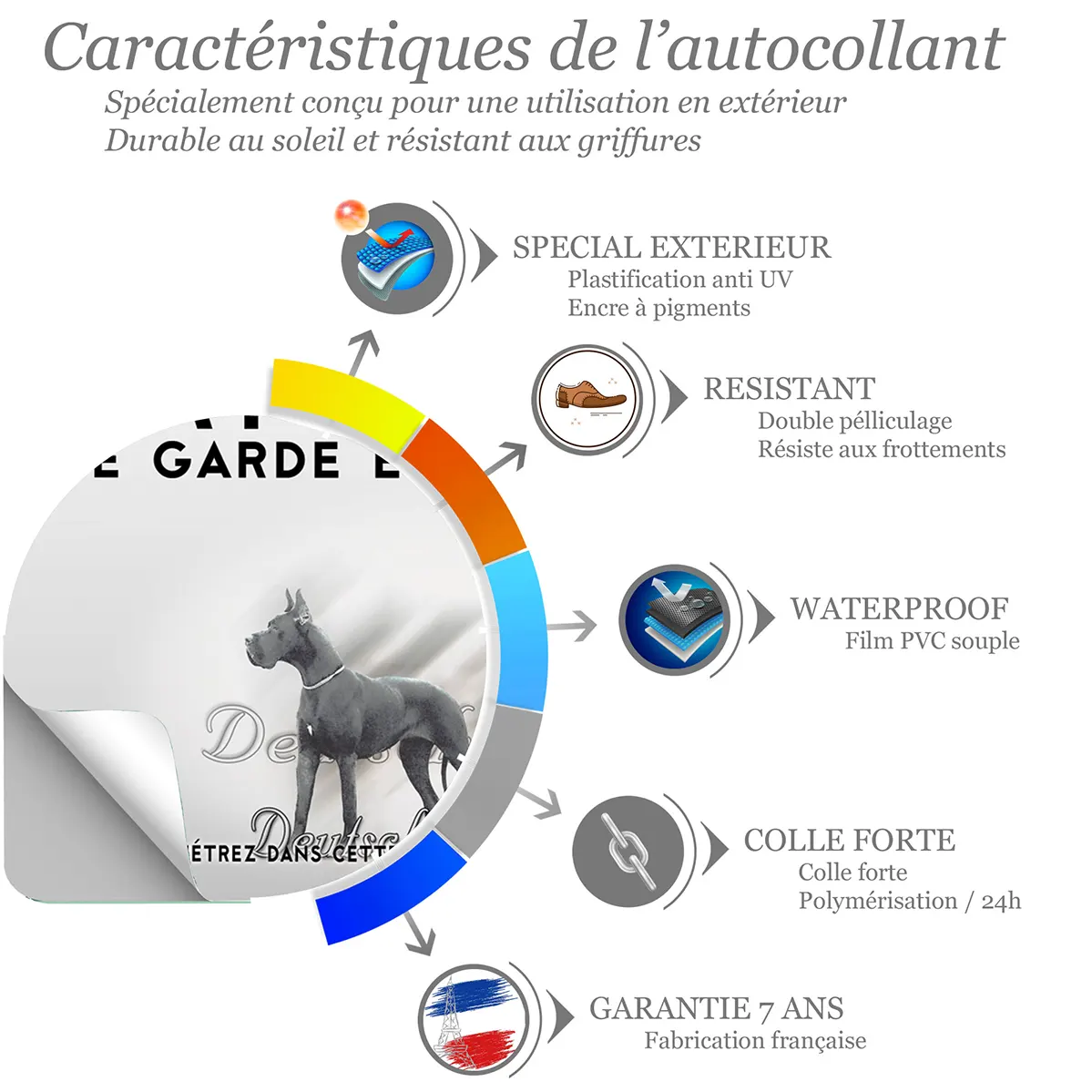 - Illustration réaliste du Chien Dogue Allemand : une image fidèle qui authentifie la présence de votre compagnon et renforce l’effet de prévention.