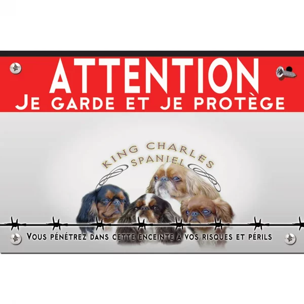 Pour en savoir plus sur notre gamme de plaque Attention au Chien Chien King Charles.