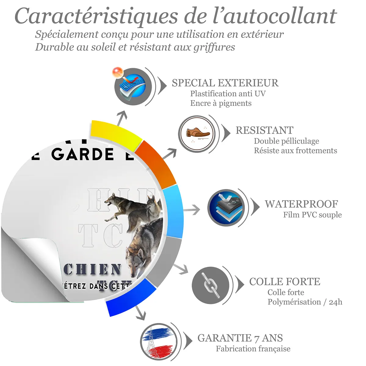 - Prévention essentielle : informe clairement de la présence du chien, limite les approches hasardeuses et aide à protéger vos biens et votre propriété.