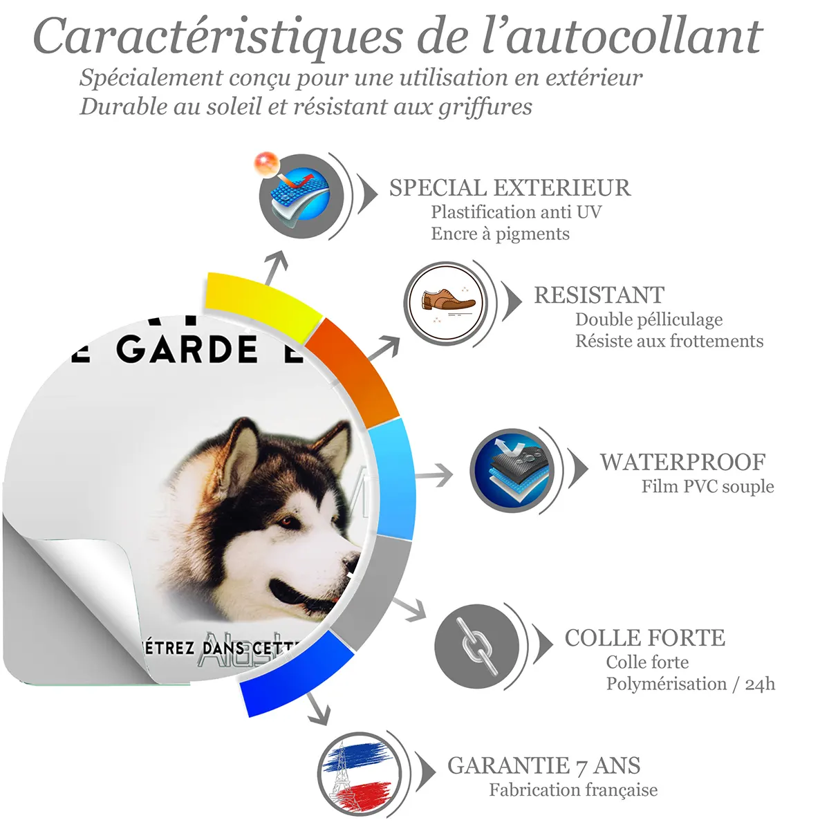 - Illustration réaliste du Chien Malamute : une image fidèle qui authentifie la présence de votre compagnon et renforce l’effet de prévention.
