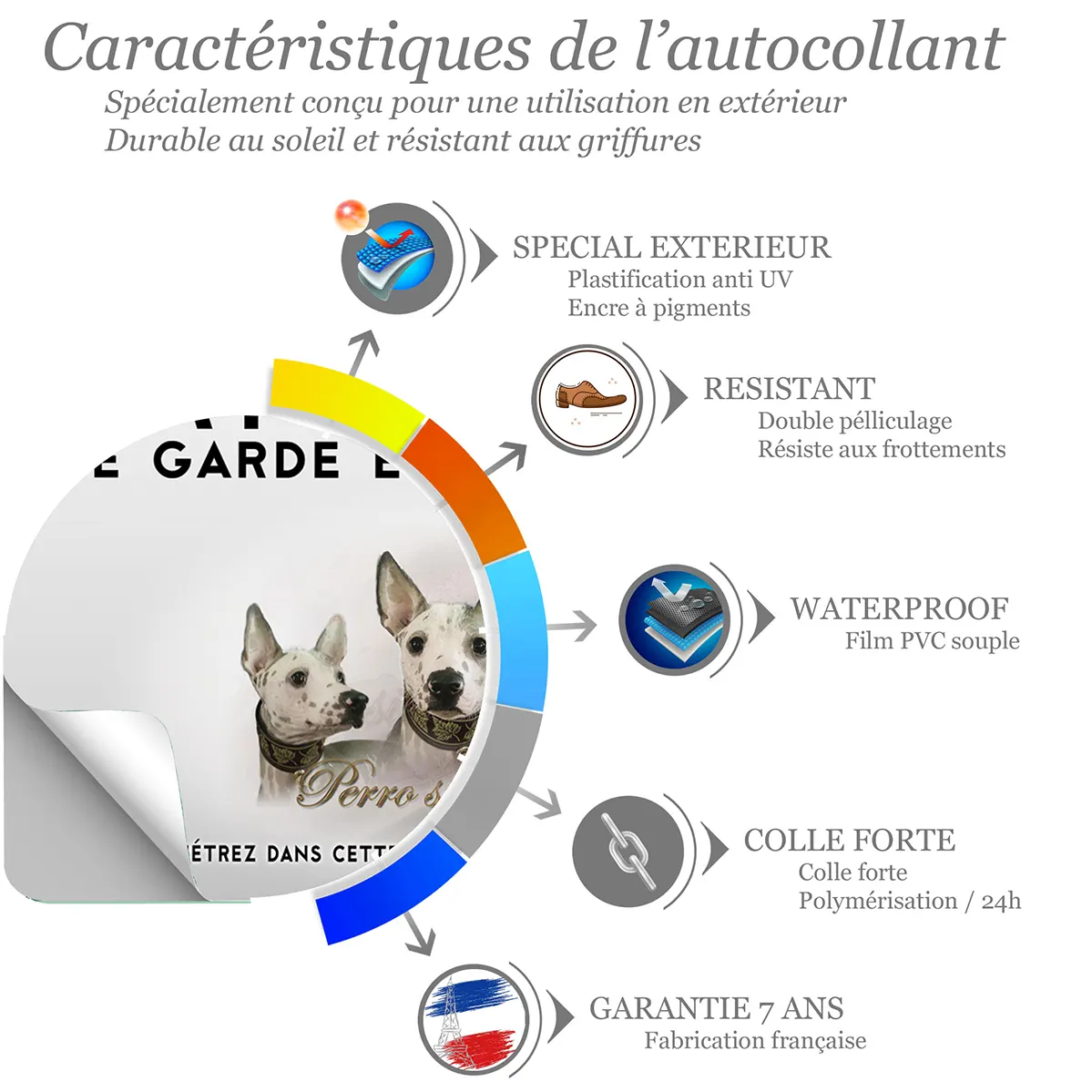 - Prévention essentielle : informe clairement de la présence du chien, limite les approches hasardeuses et aide à protéger vos biens et votre propriété.
