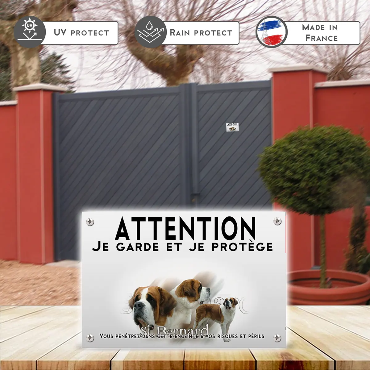 Pour en savoir plus sur notre gamme de plaque Attention au Chien Saint Bernard Poil Court.