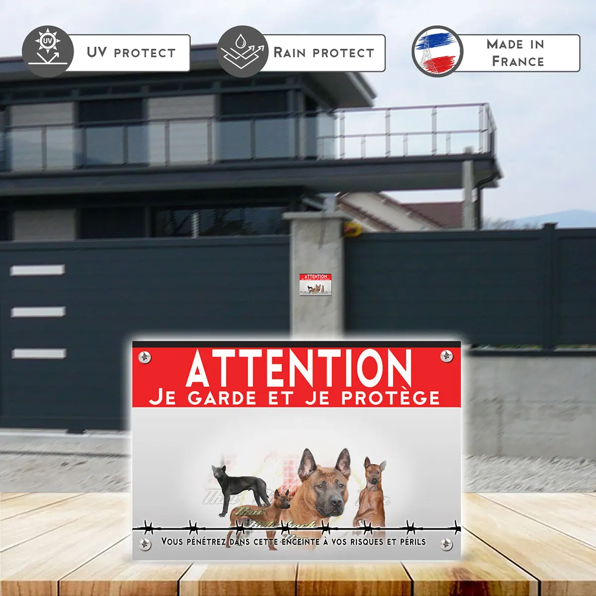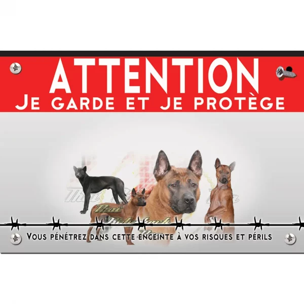 Pour en savoir plus sur notre gamme de plaque Attention au Chien Chien Thai Ridgebach.