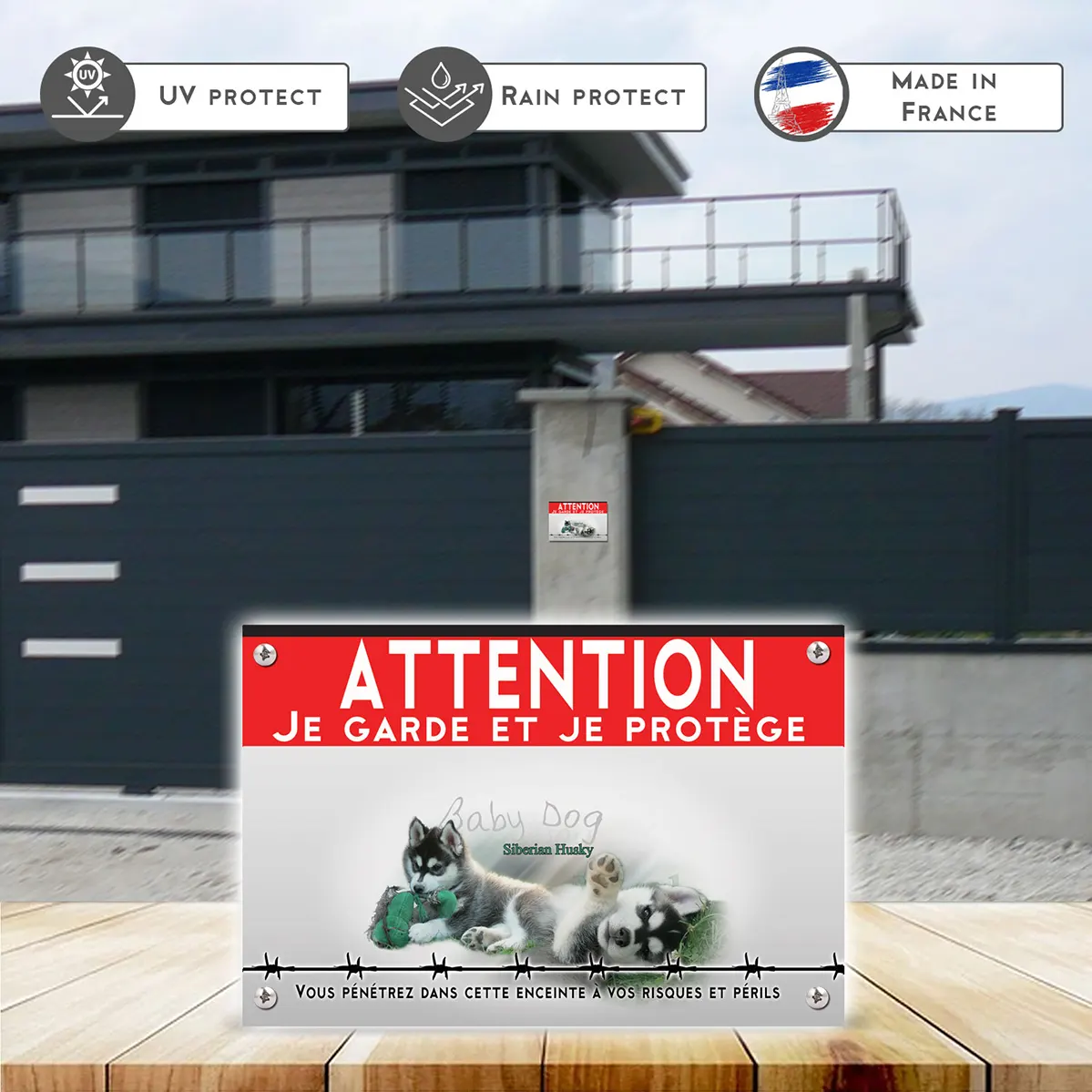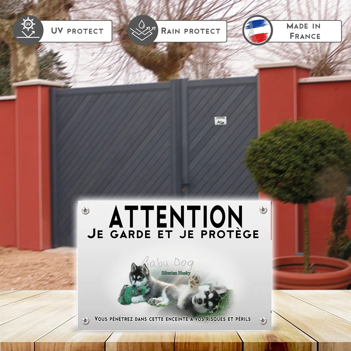 Pour en savoir plus sur notre gamme de plaque Attention au Chien Chiot Husky.
