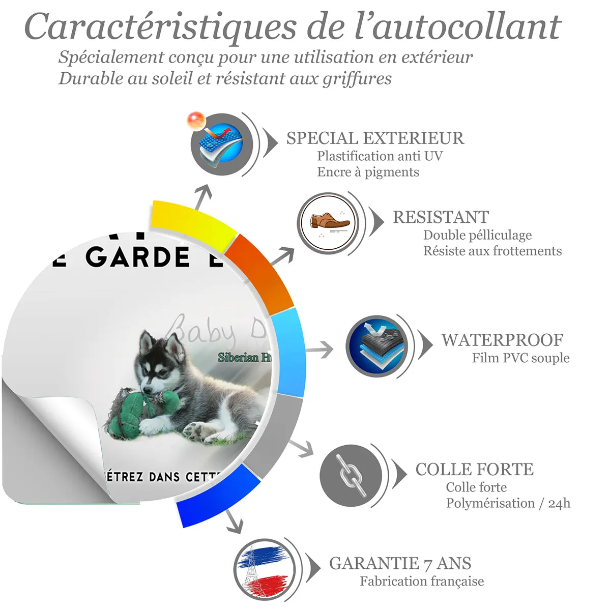 - Illustration réaliste du Chiot Husky : une image fidèle qui authentifie la présence de votre compagnon et renforce l’effet de prévention.