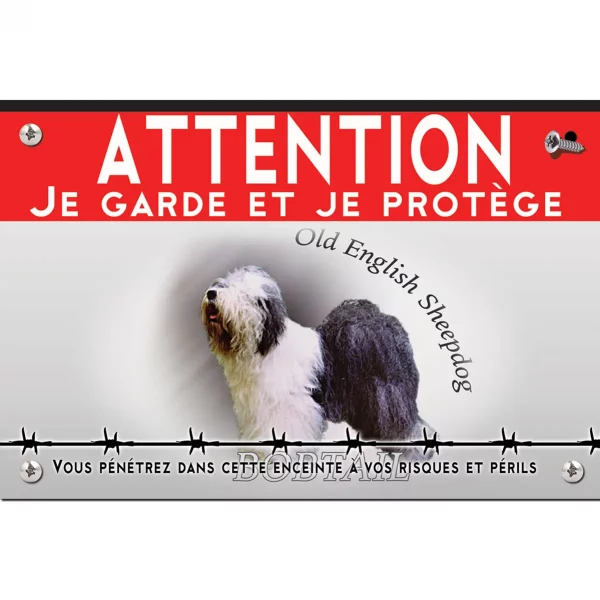 Panneau attention au chien Bobtail – Métal – Haute qualité