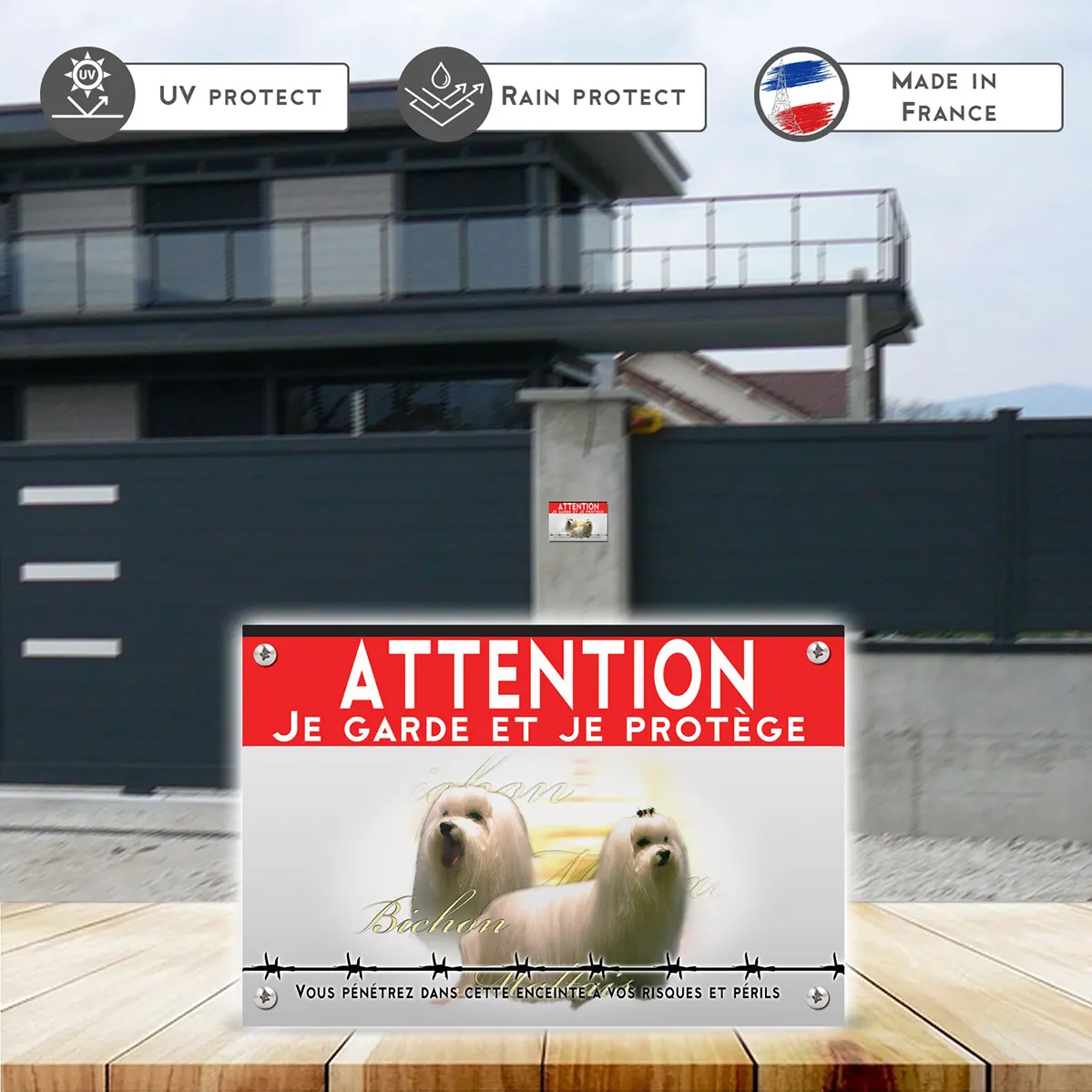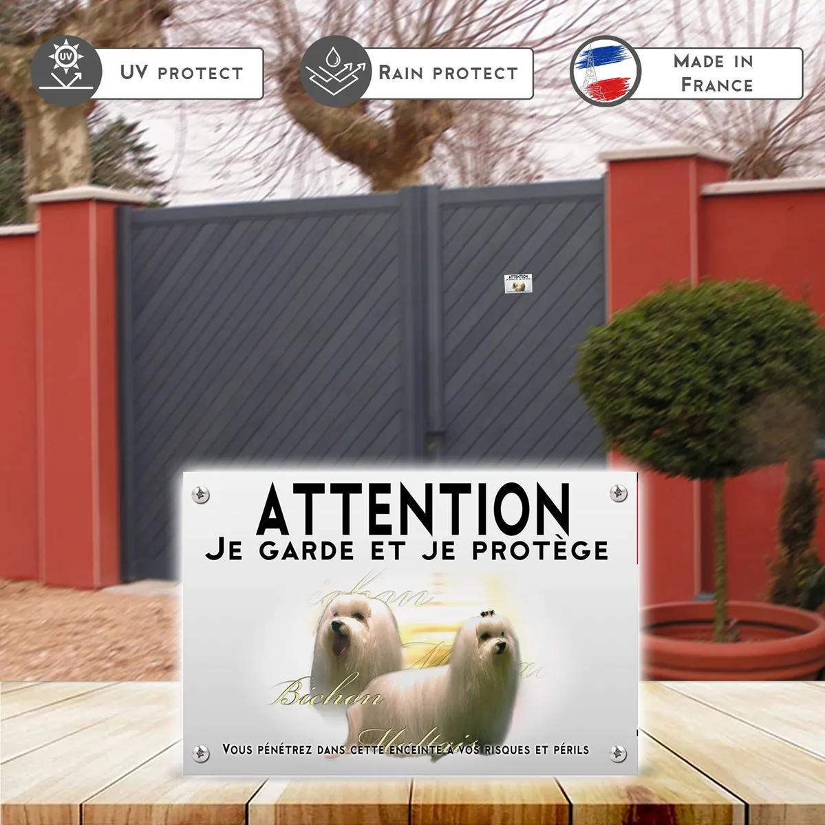 Pour en savoir plus sur notre gamme de plaque Attention au Chien Bichon Maltais.