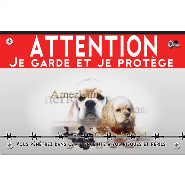 Pour en savoir plus sur notre gamme de plaque Attention au Chien Cocker Americain.