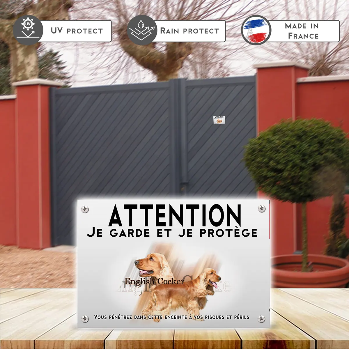 Pour en savoir plus sur notre gamme de plaque Attention au Chien Cocker Anglais Fauve.