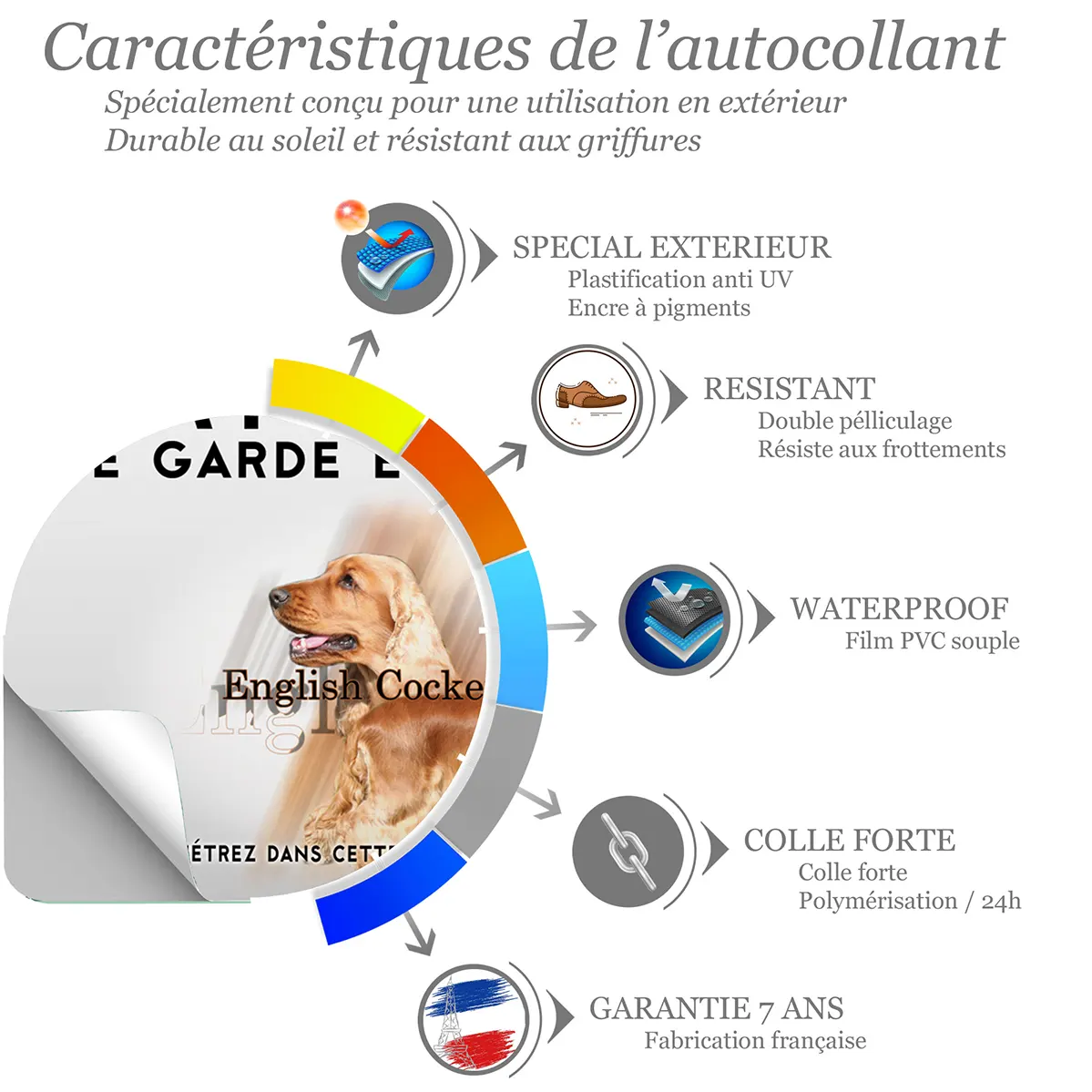 - Illustration réaliste du Cocker Anglais Fauve : une image fidèle qui authentifie la présence de votre compagnon et renforce l’effet de prévention.