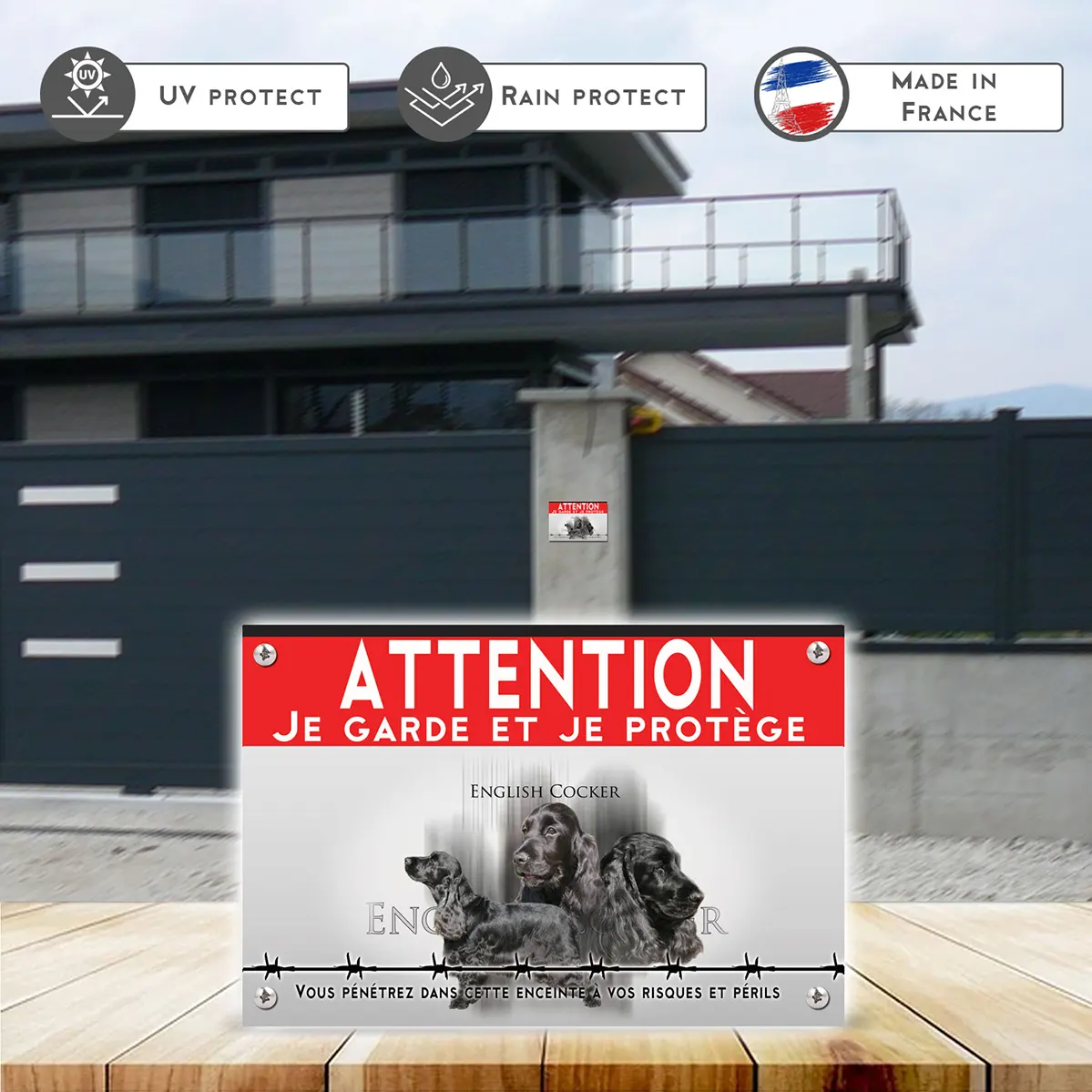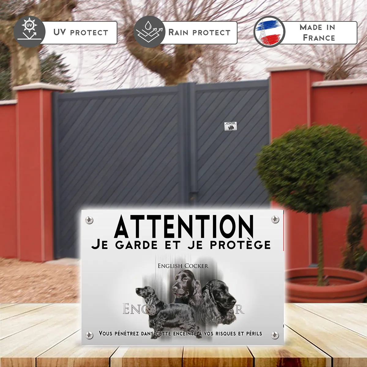 Pour en savoir plus sur notre gamme de plaque Attention au Chien Cocker Anglais Noir.
