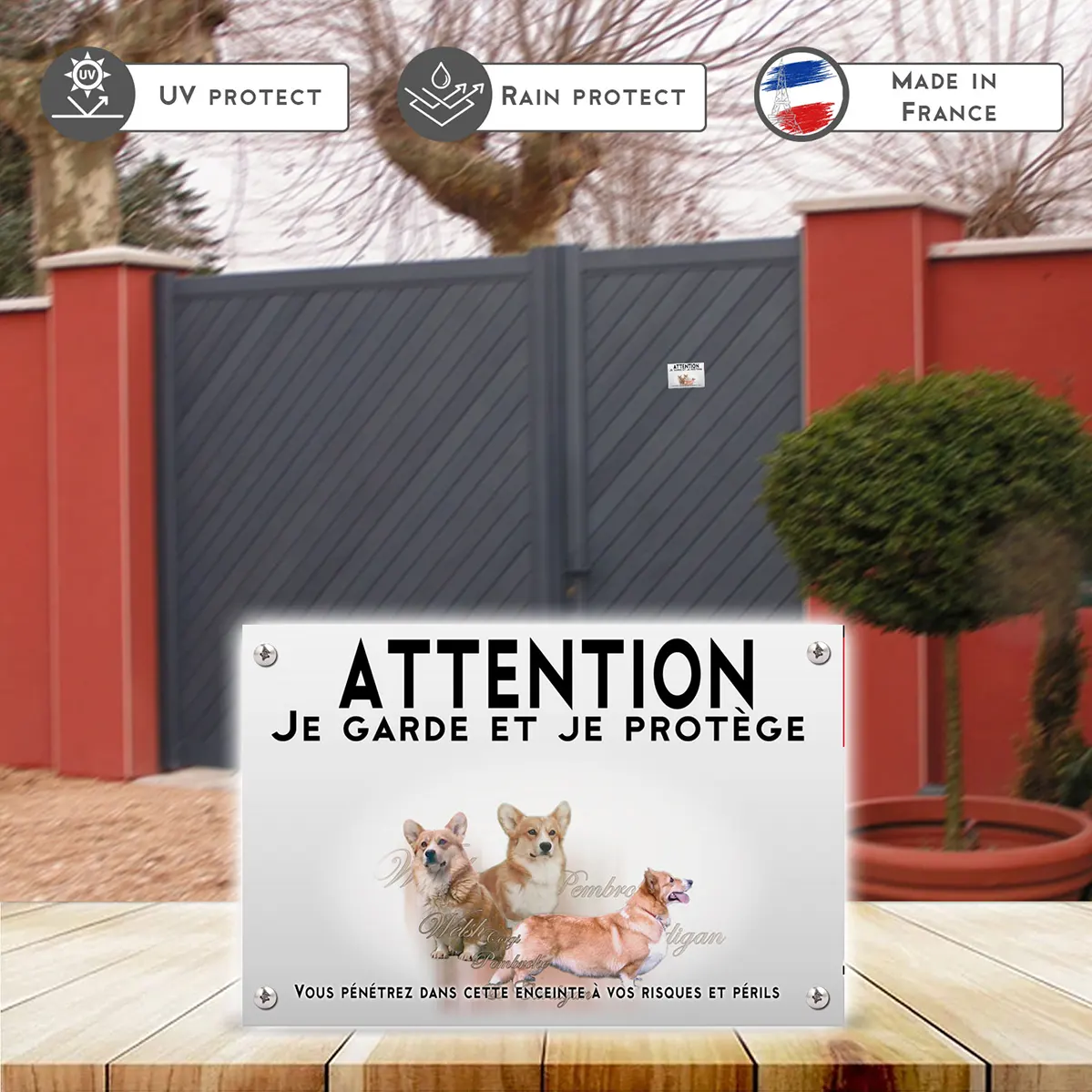 Pour en savoir plus sur notre gamme de plaque Attention au Chien Welsh Corgi.