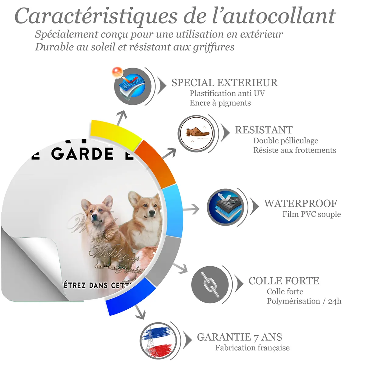 - Illustration réaliste du Corgi Cardigan : une image fidèle qui authentifie la présence de votre compagnon et renforce l’effet de prévention.