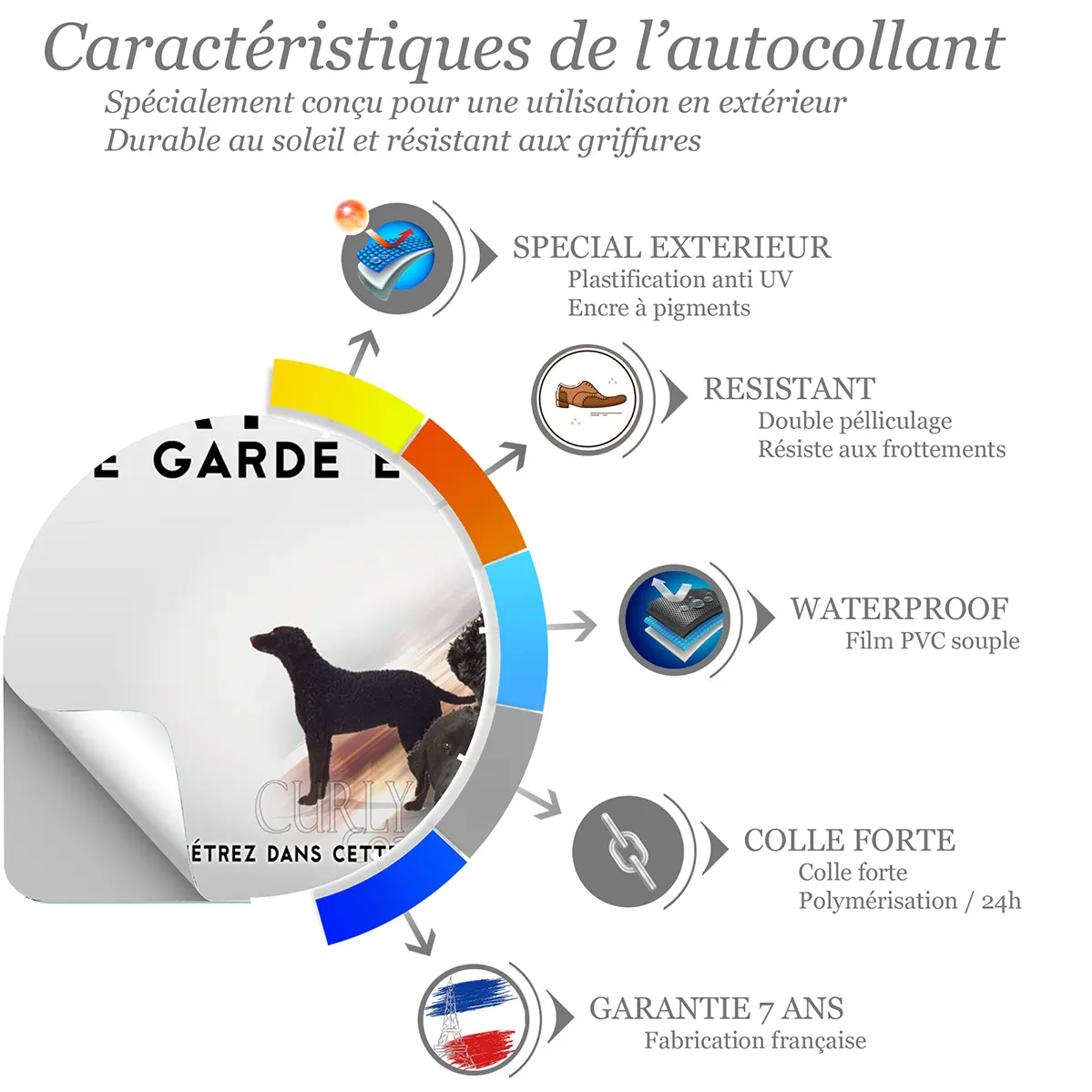Affichez avec force et élégance la présence de votre Curly Coated. Ce panneau Attention au Chien Curly Coated de la Gamme Impact, disponible en métal Dibond et autocollant résistant aux intempéries et imprimé en UV, offre un contraste puissant pour une lisibilité immédiate et une dissuasion polie à l’entrée.