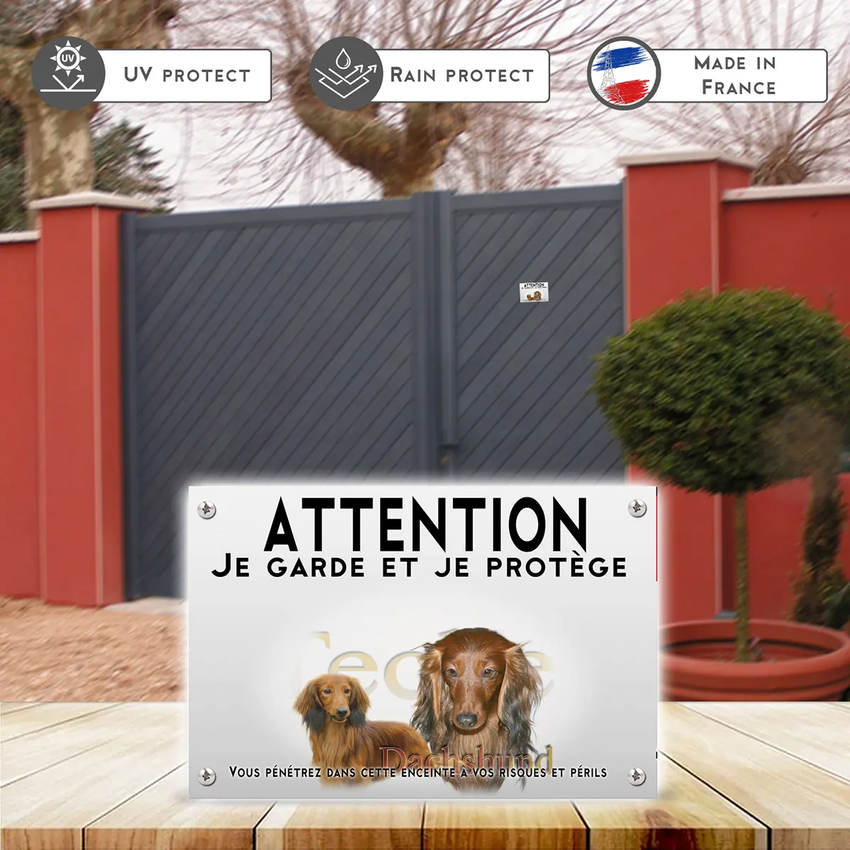 Pour en savoir plus sur notre gamme de plaque Attention au Chien Dachshund.