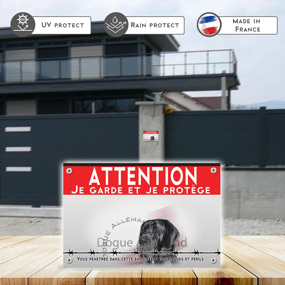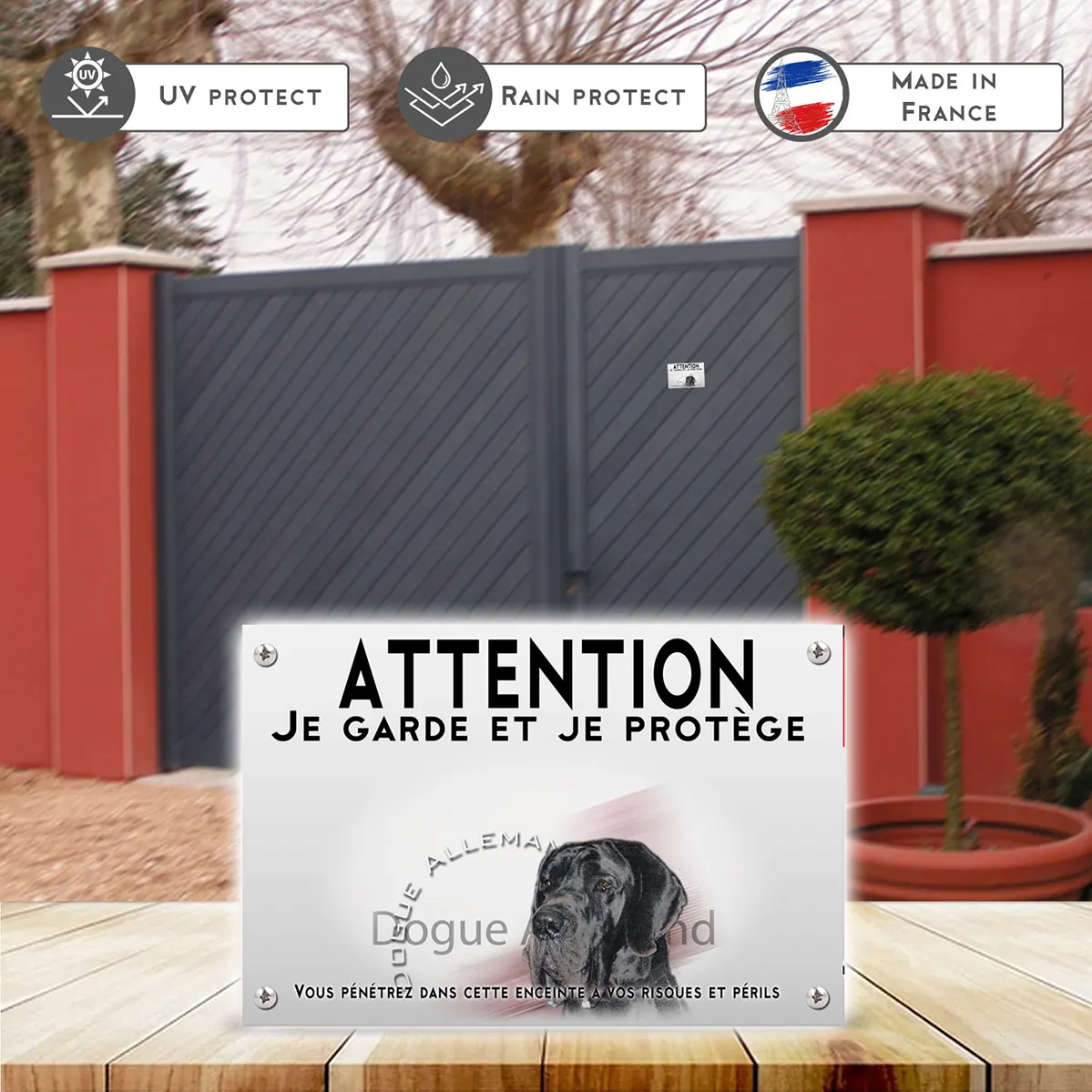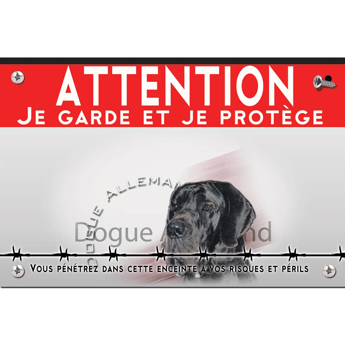 Pour en savoir plus sur notre gamme de plaque Attention au Chien Dogue Allemand Noir.
