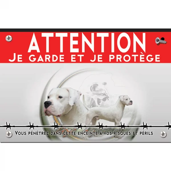 Pour en savoir plus sur notre gamme de plaque Attention au Chien Dogue Argentin.