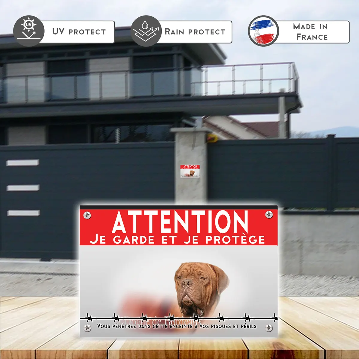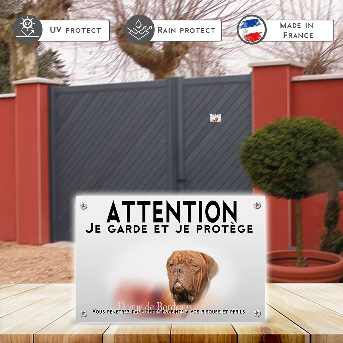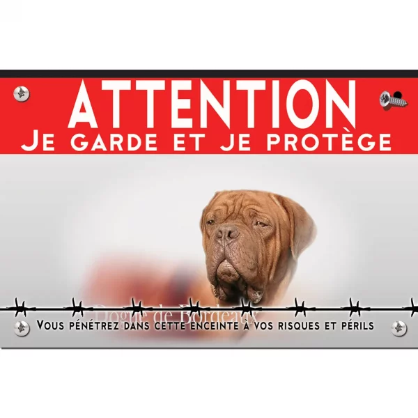 Pour en savoir plus sur notre gamme de plaque Attention au Chien Dogue De Bordeaux.