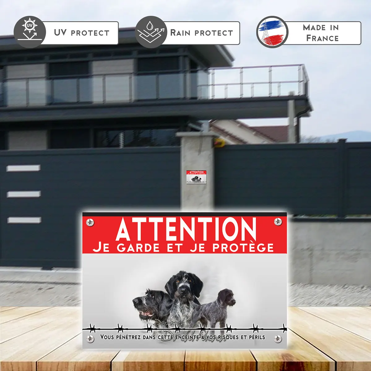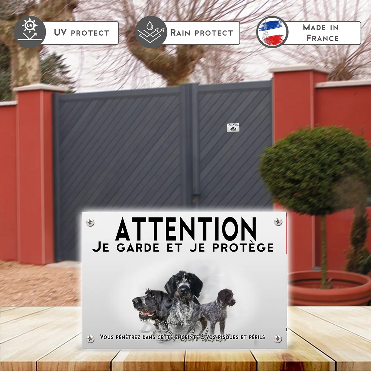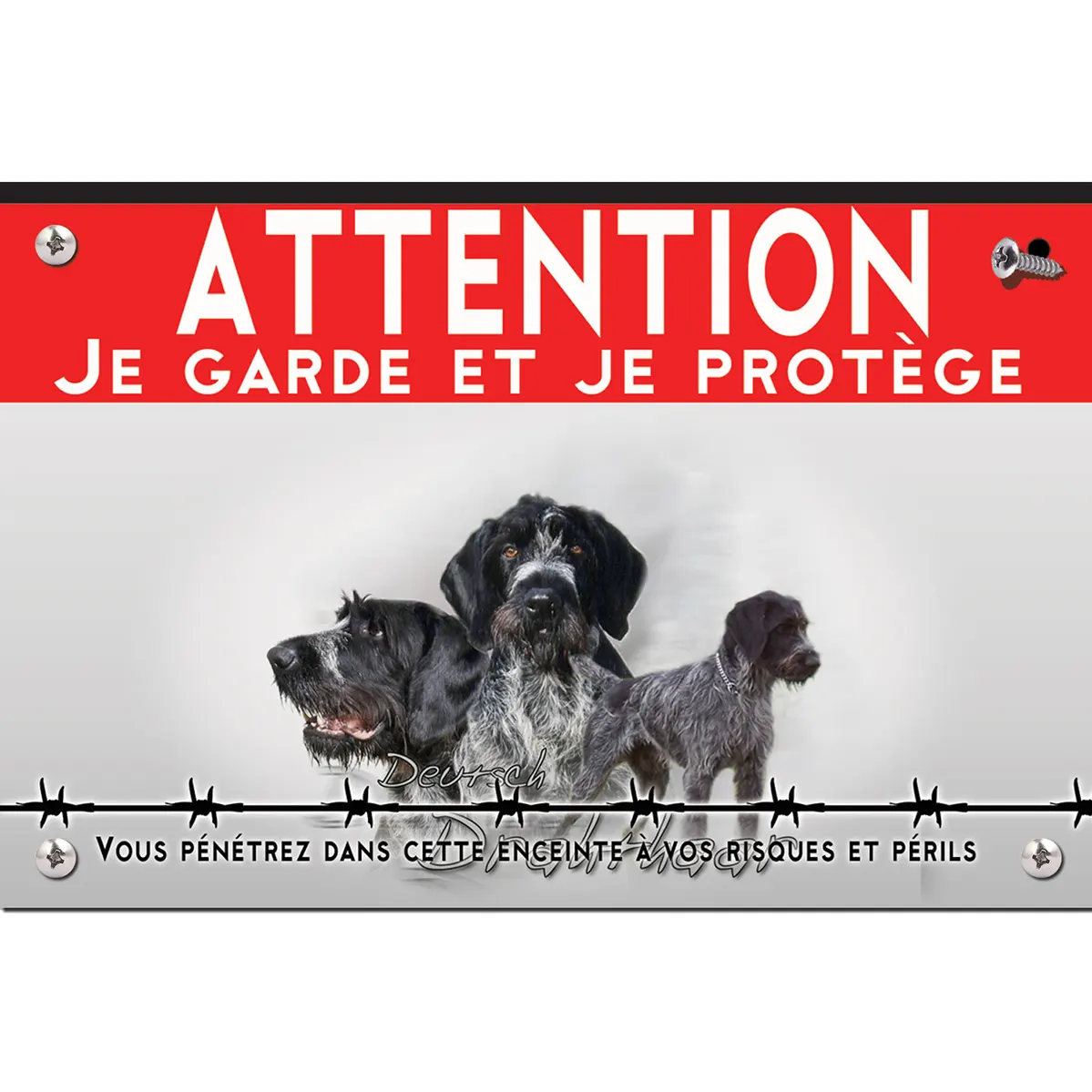 Pour en savoir plus sur notre gamme de plaque Attention au Chien Drahthaars.