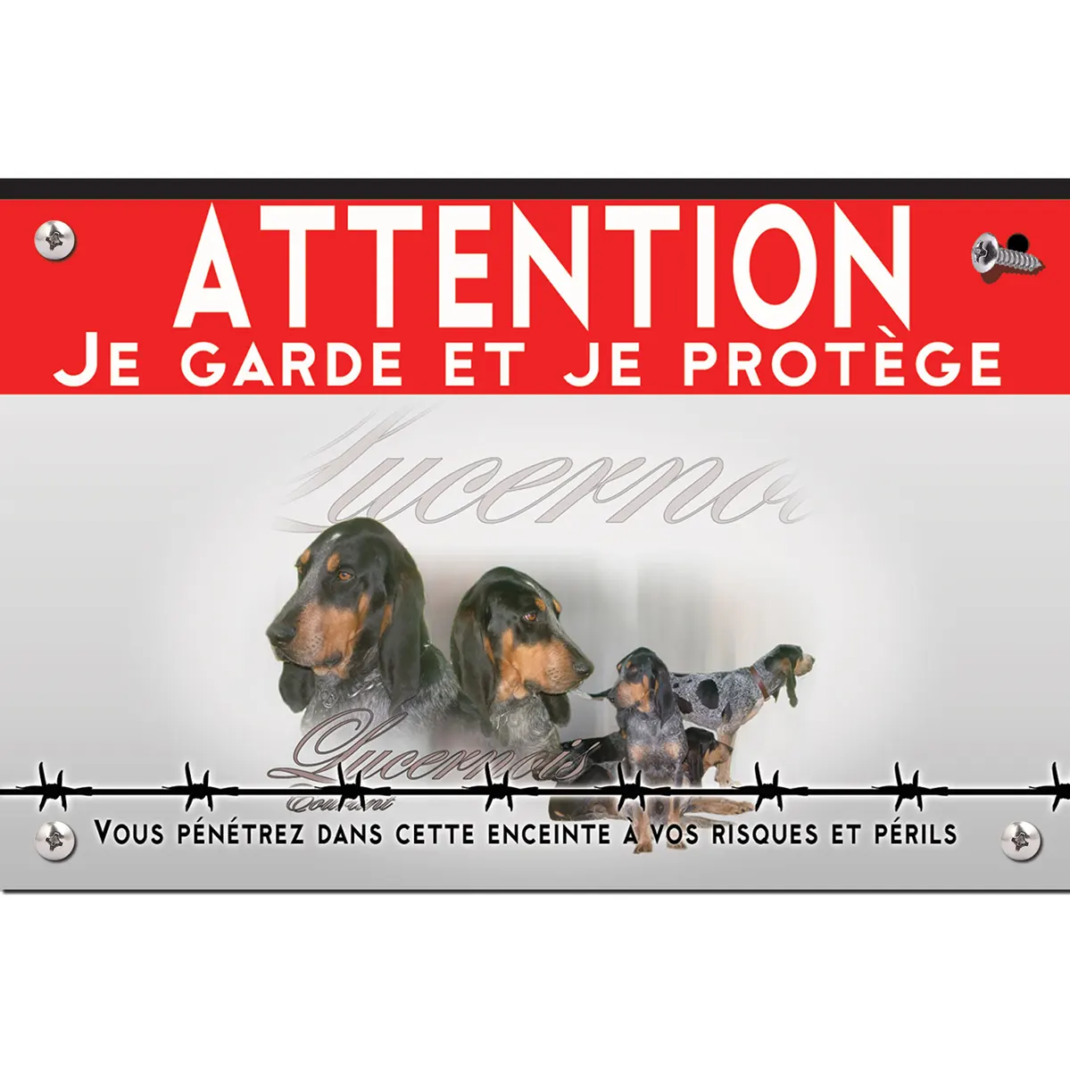 Pour en savoir plus sur notre gamme de plaque Attention au de chasse Chien Lucernois.