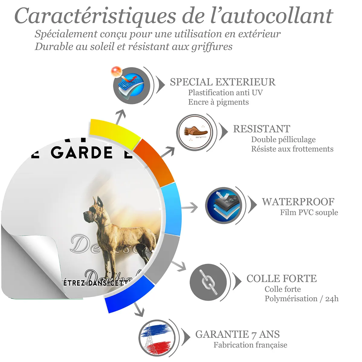 - Illustration réaliste du Grand Danois : une image fidèle qui authentifie la présence de votre compagnon et renforce l’effet de prévention.