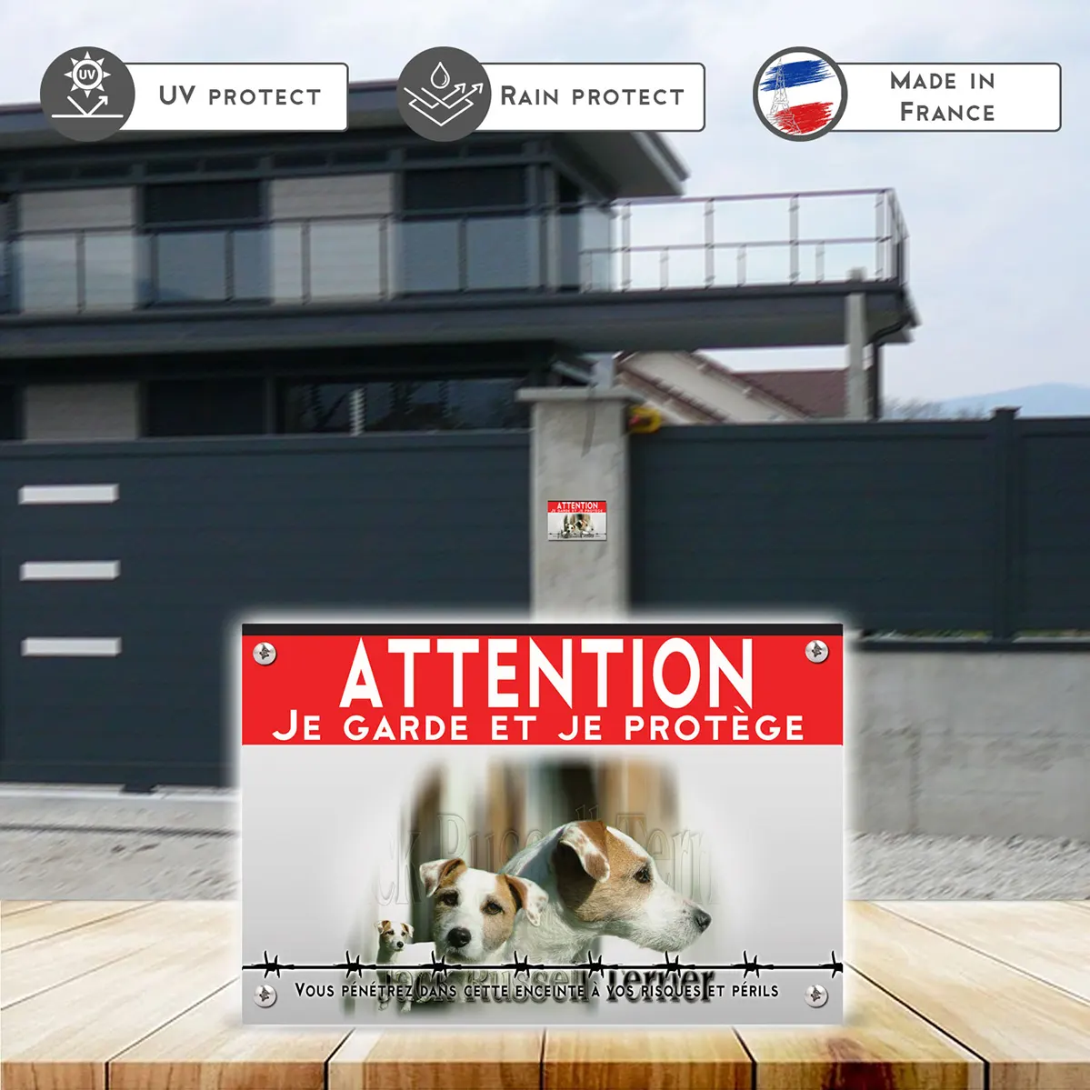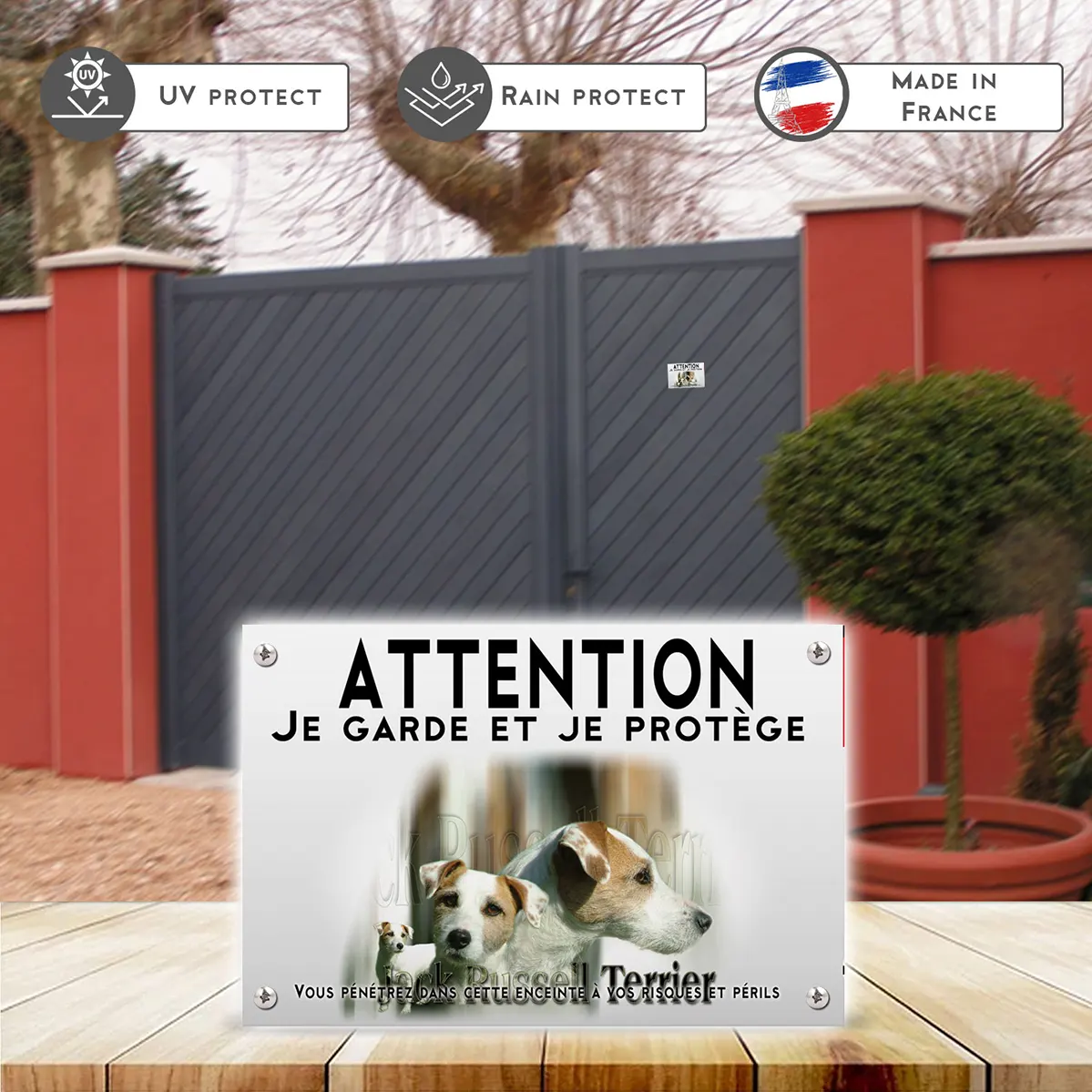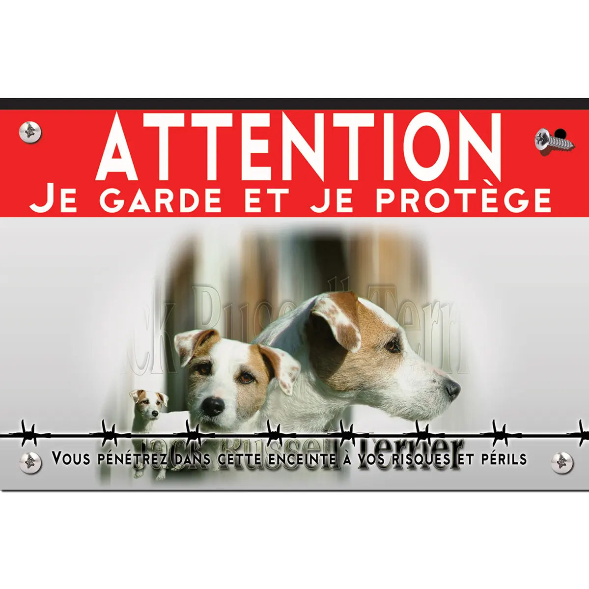 Pour en savoir plus sur notre gamme de plaque Attention au Chien Jack Russel.