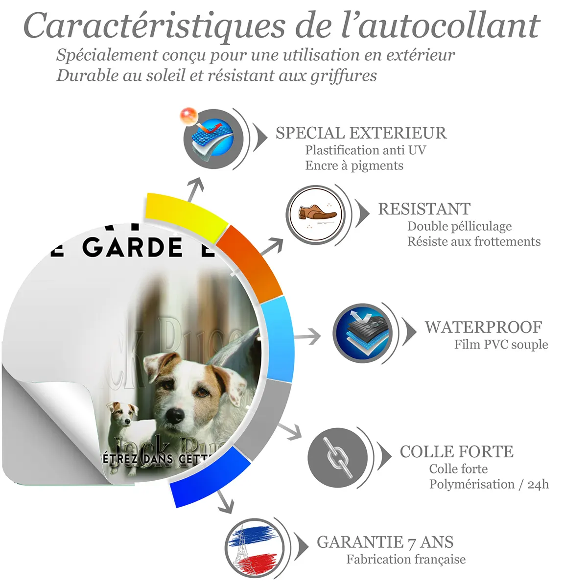 - Illustration réaliste du Jack Russel : une image fidèle qui authentifie la présence de votre compagnon et renforce l’effet de prévention.