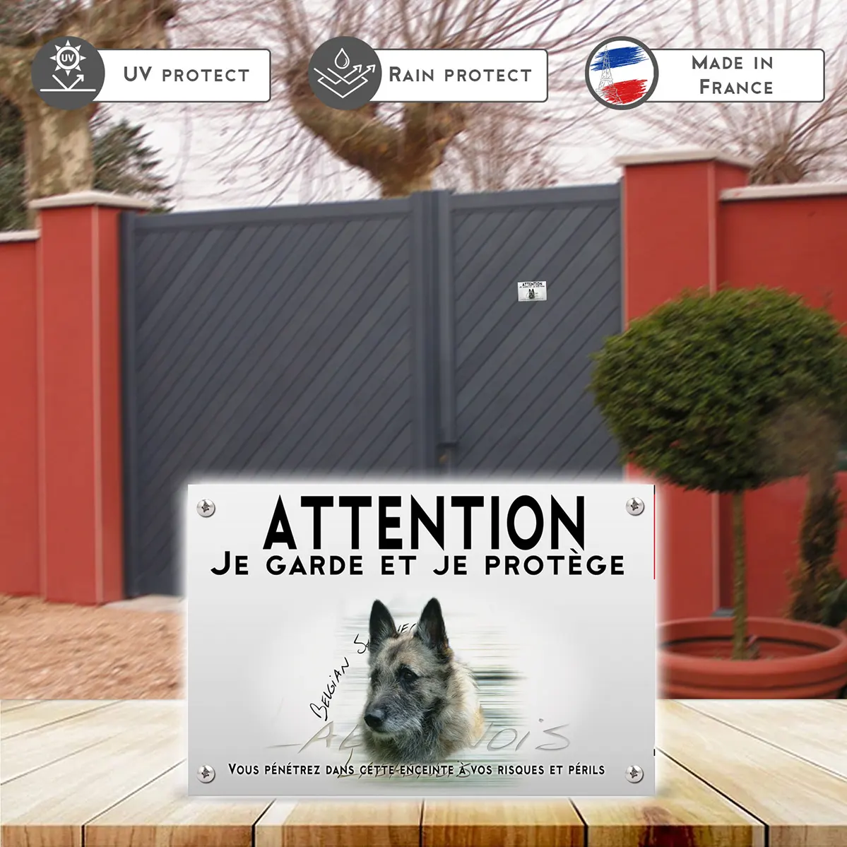 Plaque attention au chien Malinois De Mondioring métal résistant extérieur
