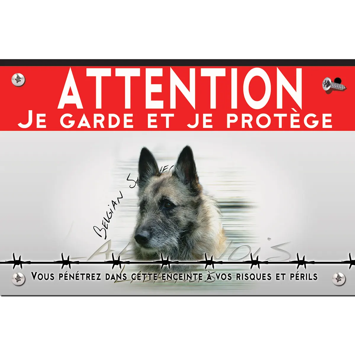 Panneau attention au chien Berger Belge Laekenois – Métal – Haute qualité