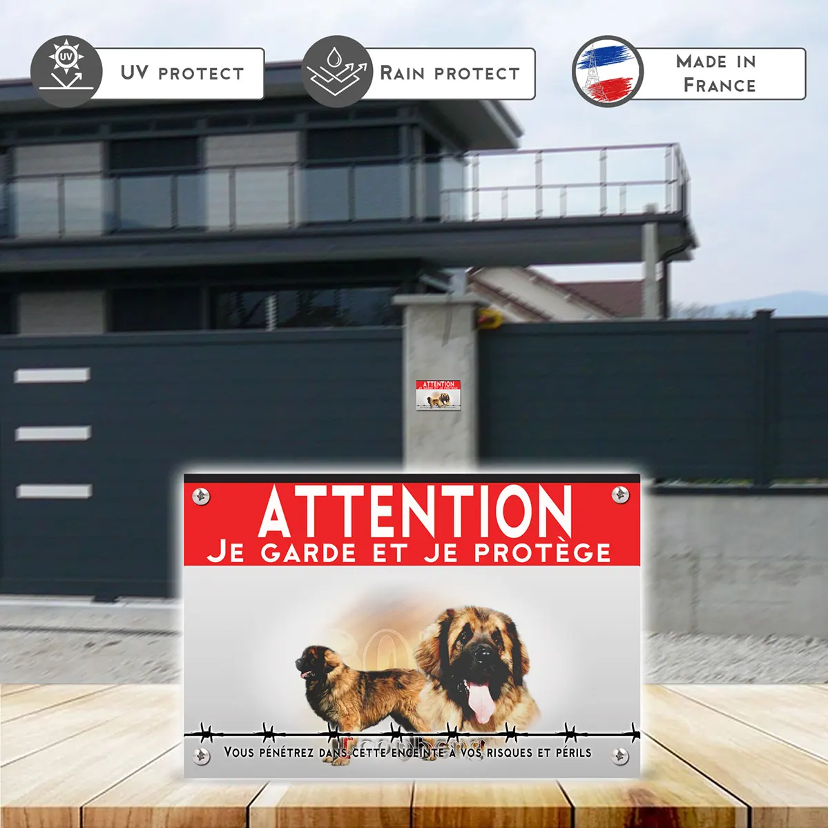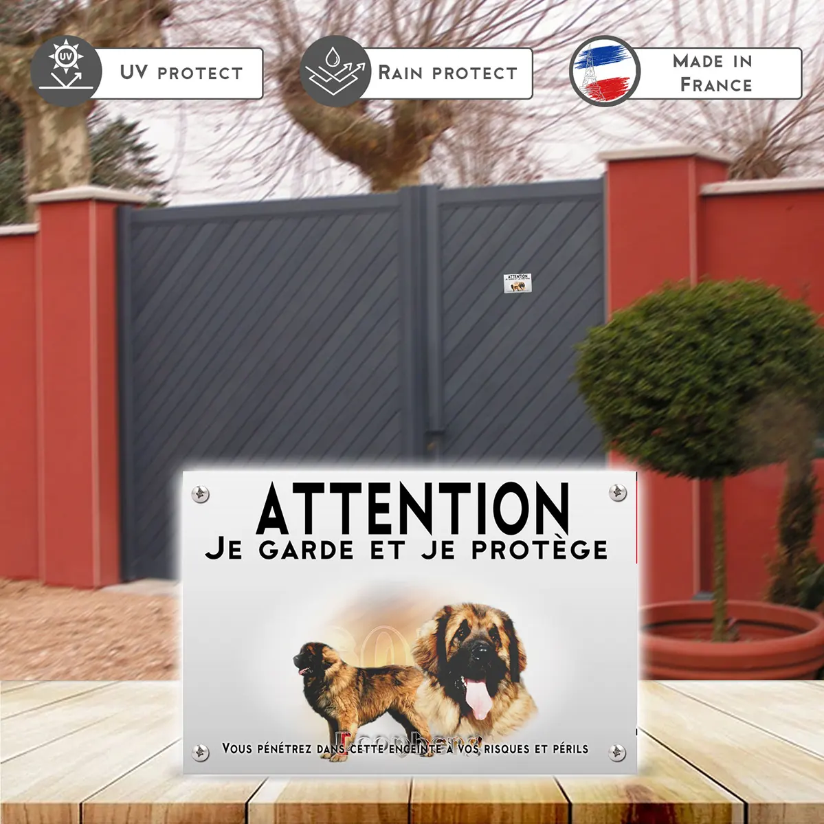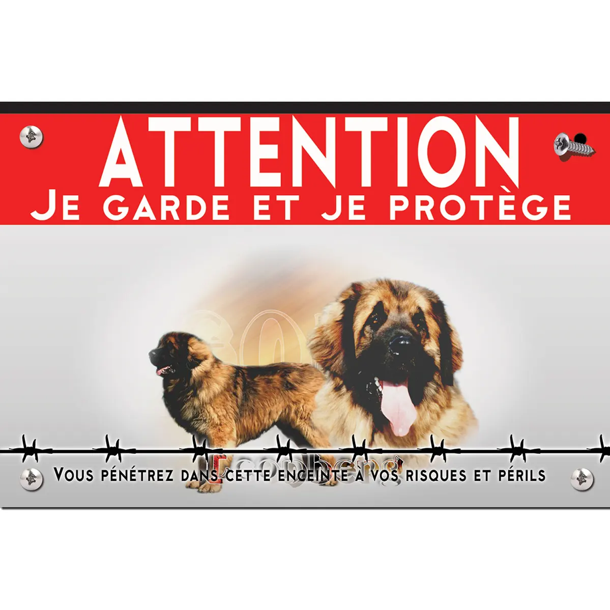 Pour en savoir plus sur notre gamme de plaque Attention au Chien Leonberg.