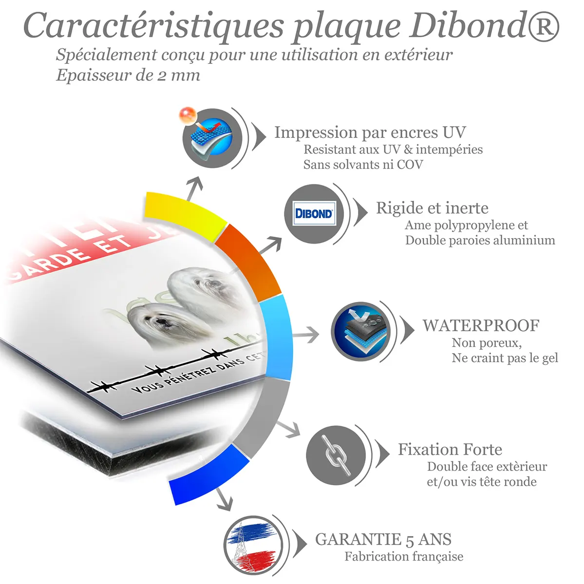 Affichez avec force et élégance la présence de votre Lhasa Apso. Ce panneau Attention au Chien Lhasa Apso de la Gamme Impact, disponible en métal Dibond et autocollant résistant aux intempéries et imprimé en UV, offre un contraste puissant pour une lisibilité immédiate et une dissuasion polie à l’entrée.