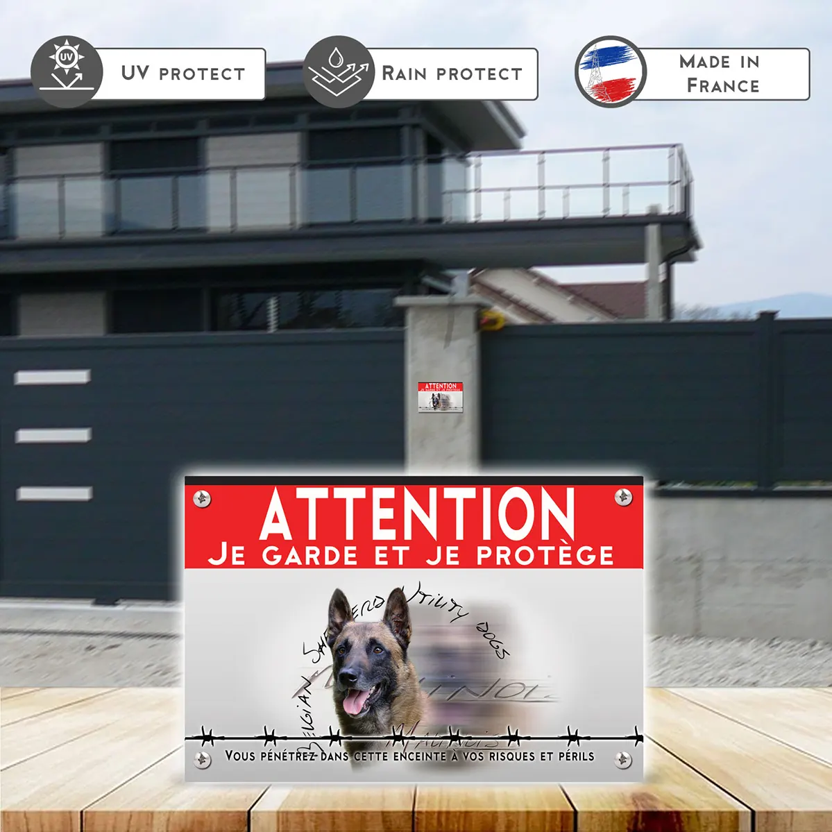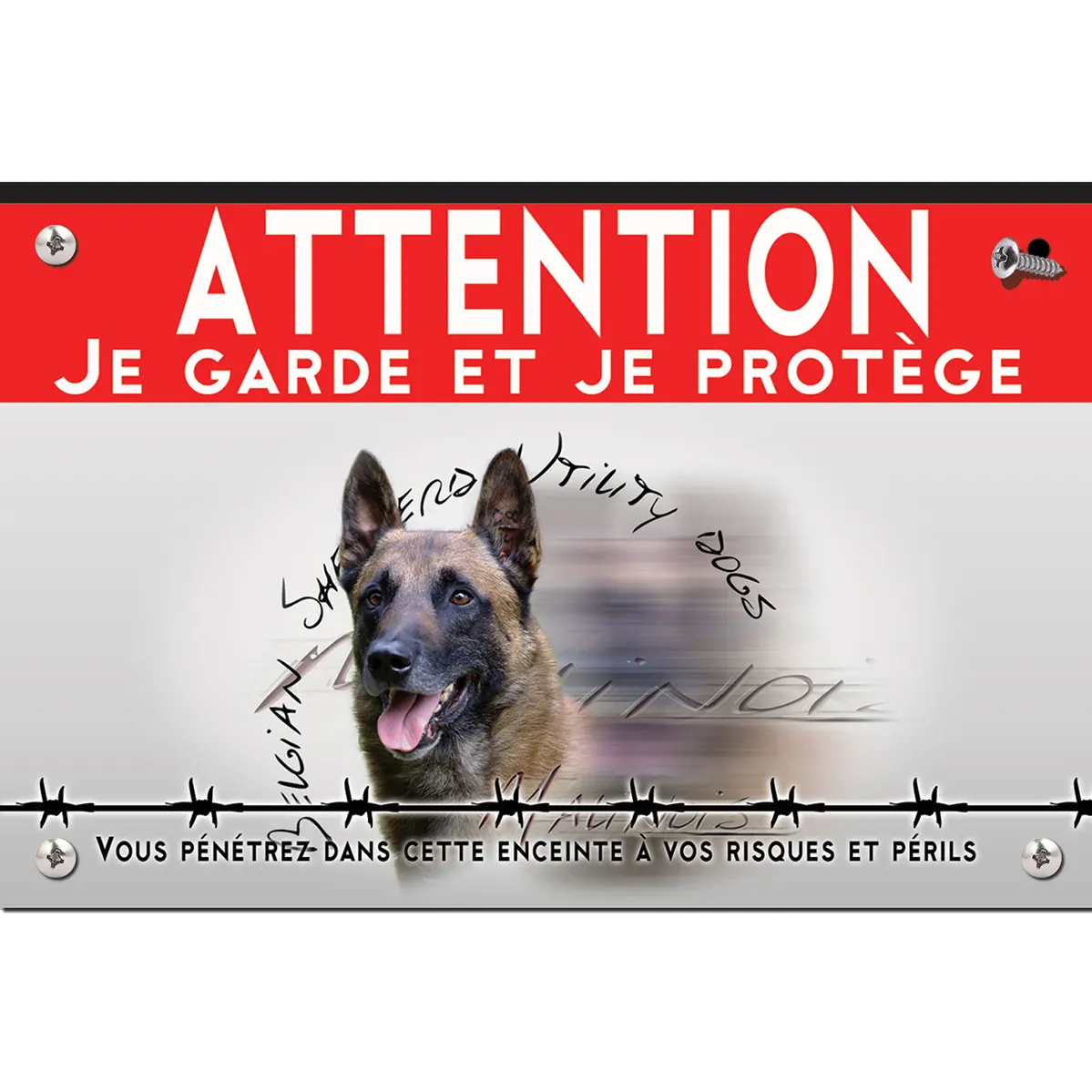 Panneau attention au chien Malinois De Ring – Métal – Haute qualité