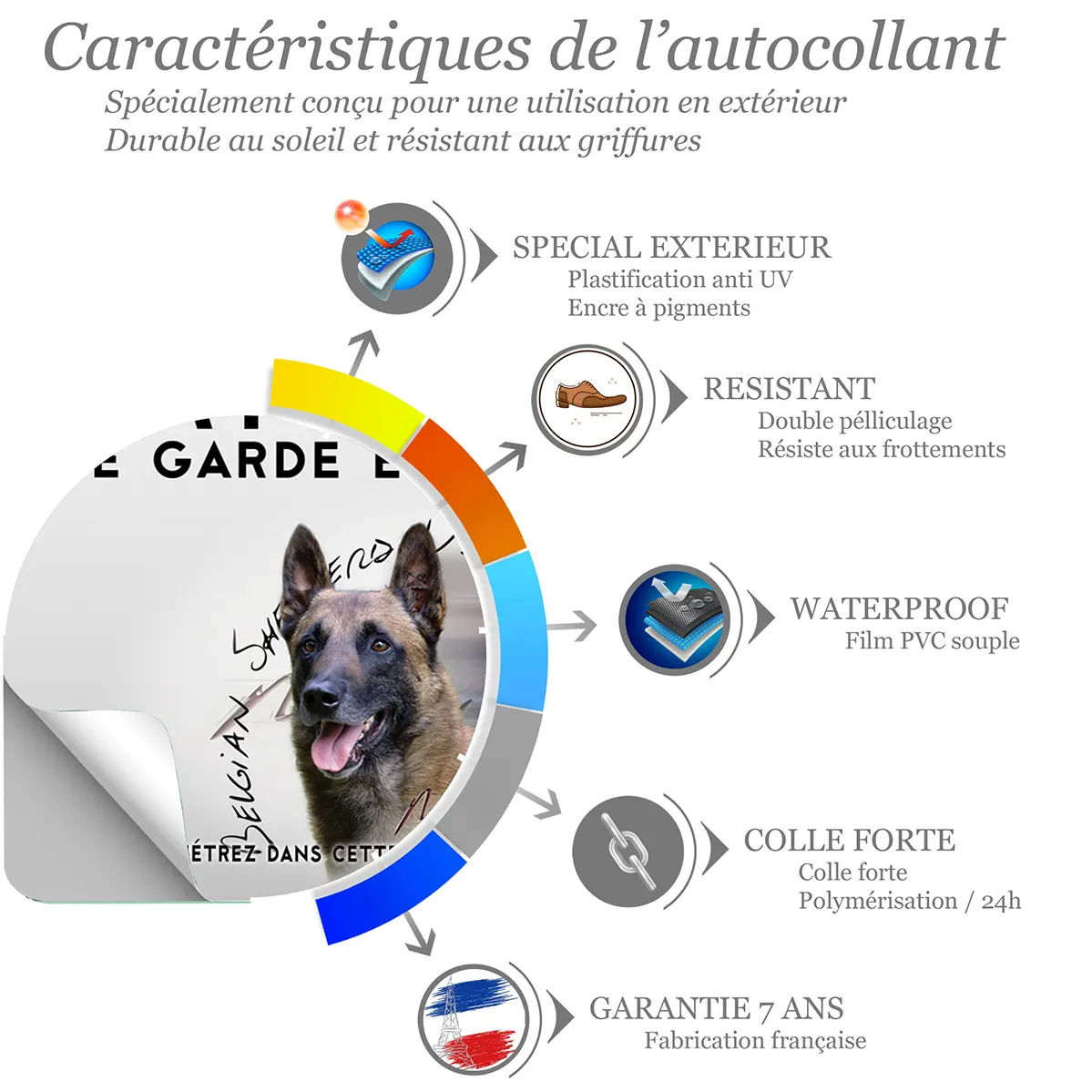 • Illustration réaliste du Malinois De Ring : une image fidèle qui authentifie la présence de votre compagnon et renforce l’effet de prévention.