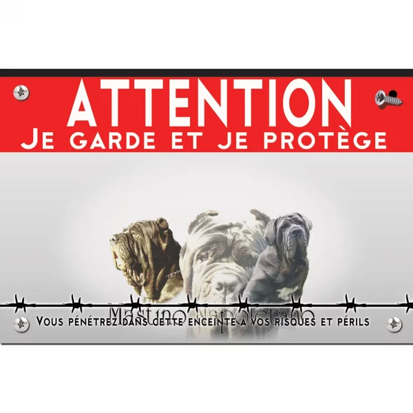 Pour en savoir plus sur notre gamme de plaque Attention au Chien Matin De Naples.