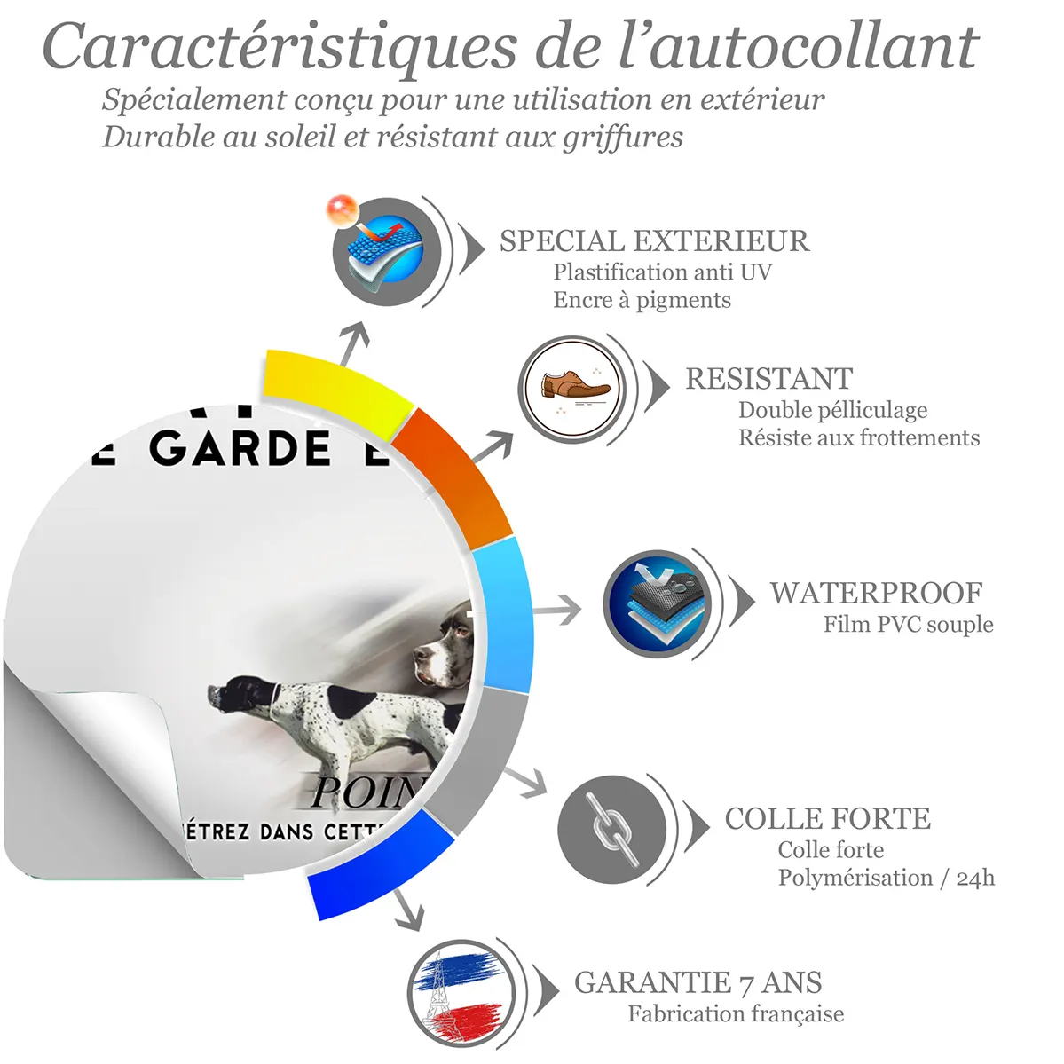 Oui, la mention “Attention au chien” est claire et lisible. Le visuel du Pointer Anglais renforce l’effet dissuasif auprès des visiteurs ou des intrus.